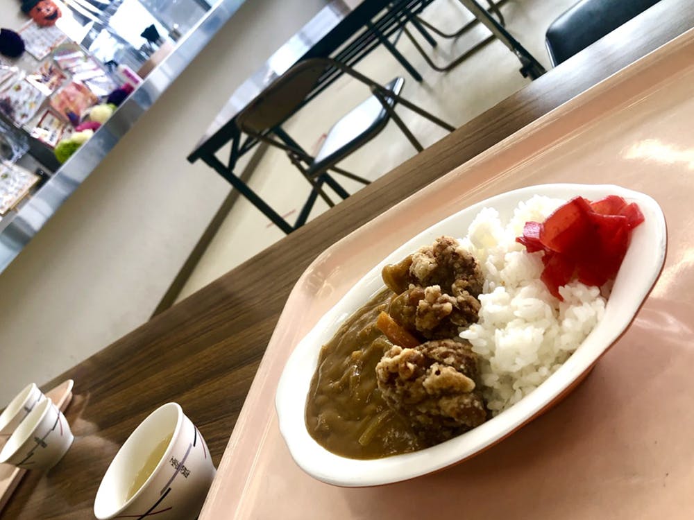 今日は本当はラーメンが食べたかったのだけど、ラーメンをやってない日だそうで、「唐揚げカレー」という高校生にはぴったりのカレーを食べました。