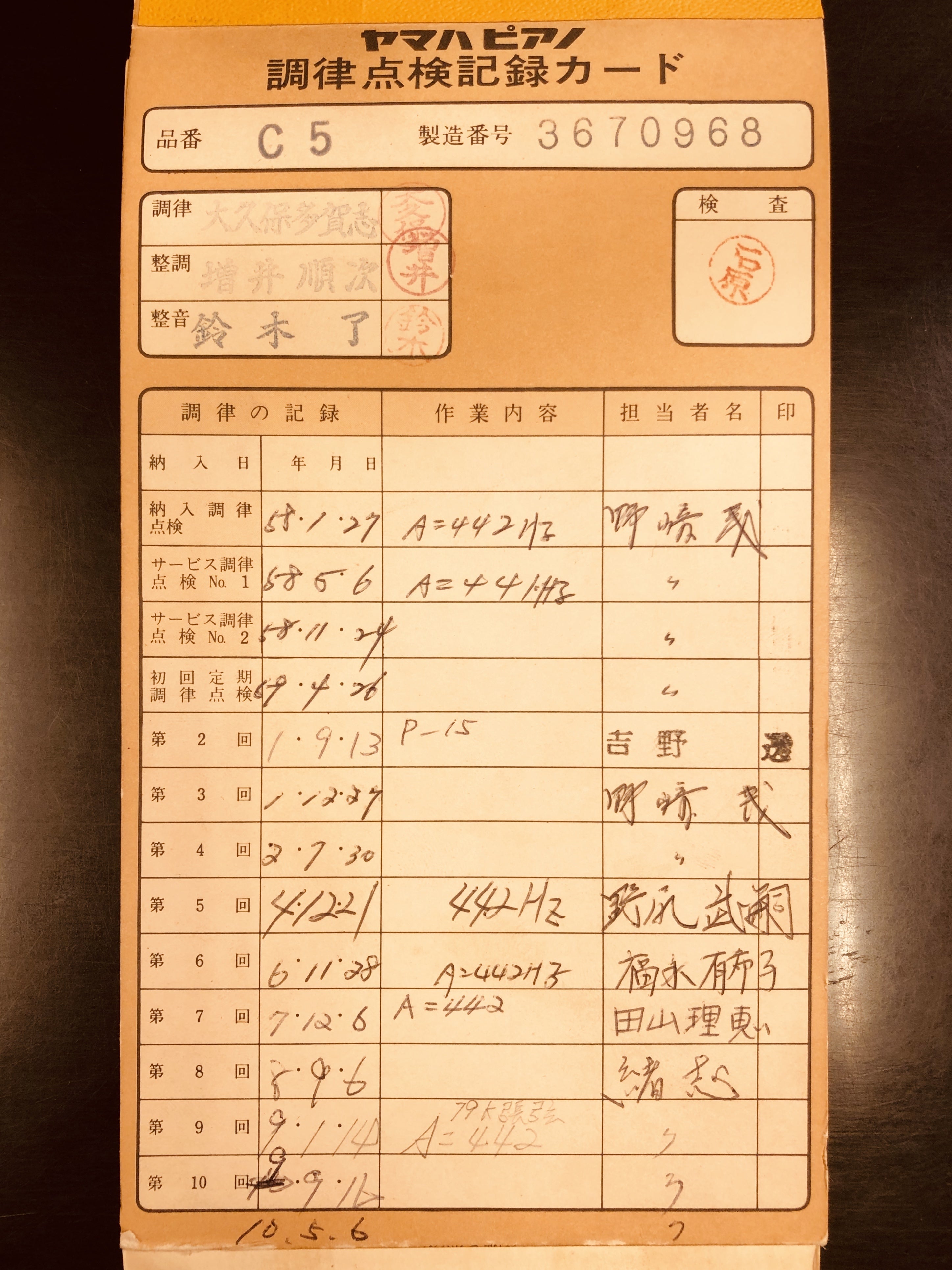 調律の記録によると、なんと15年ぶりの調律だったようです。