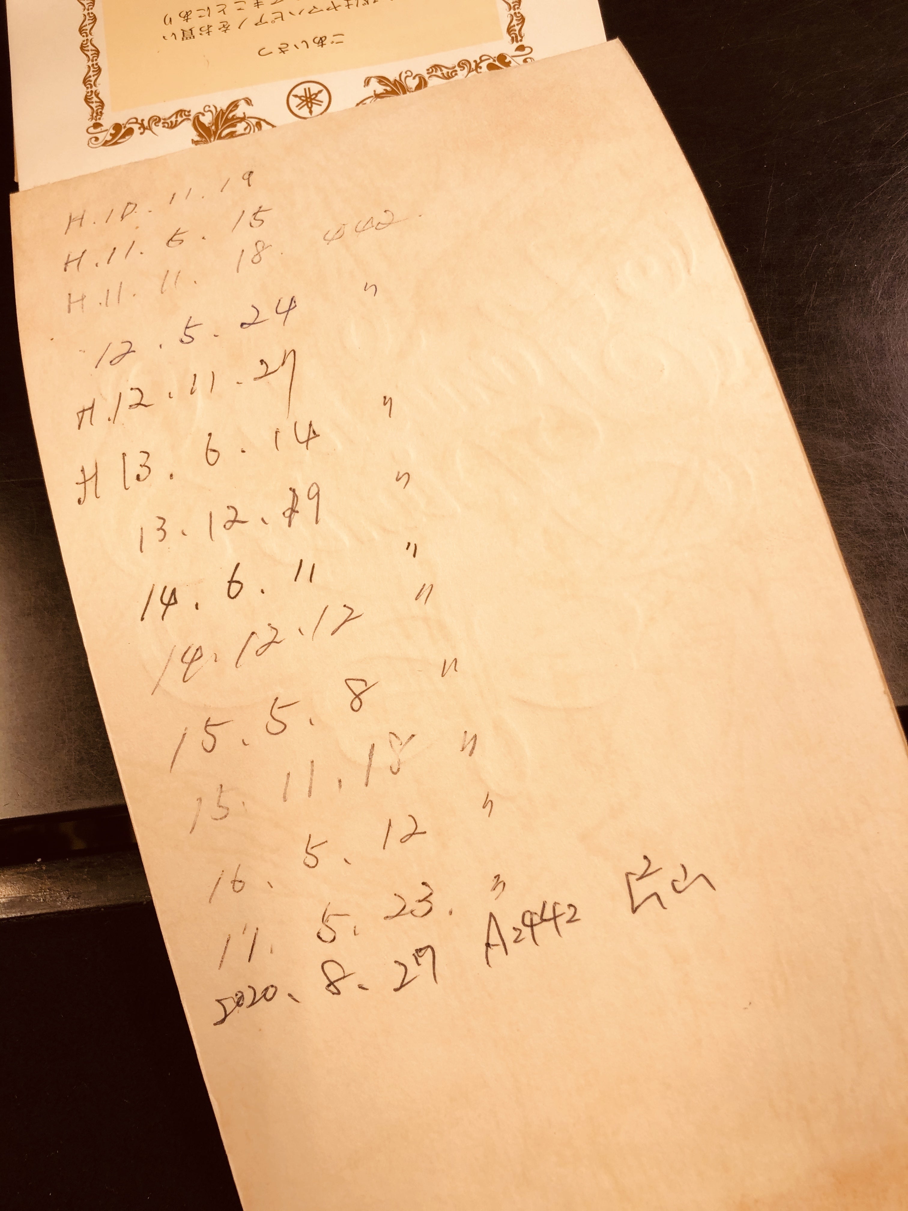 そしてその記録にはピアノを納入された日付も書かれていました。