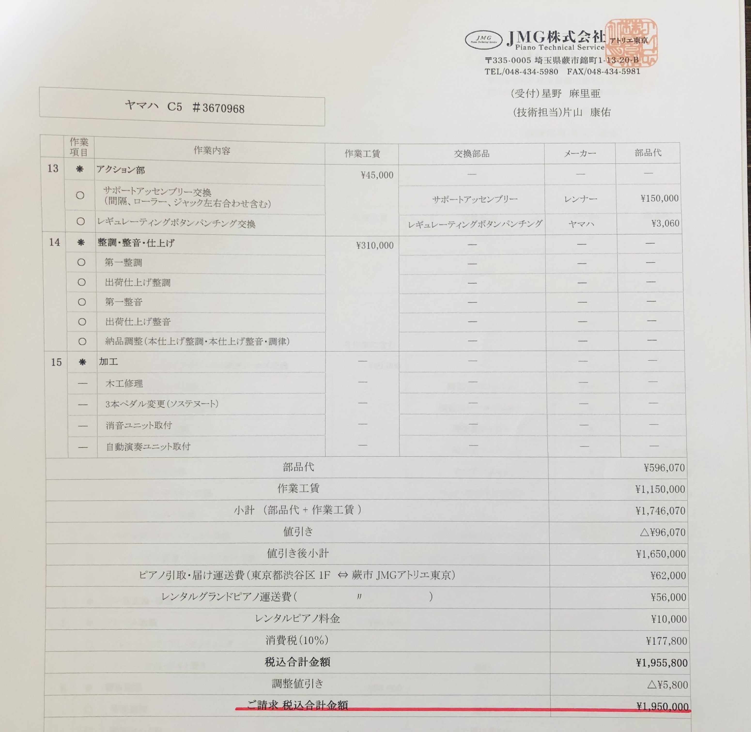 「YAMAHAグランドピアノC5のオーバーホールをしたい」