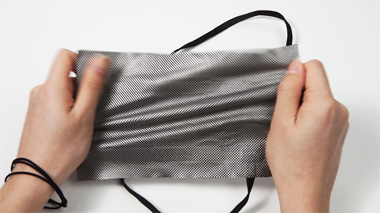 ▲ダウン内部の発熱シートを取り出してみました。くしゃくしゃにしても、この通り。高強度で安心です。