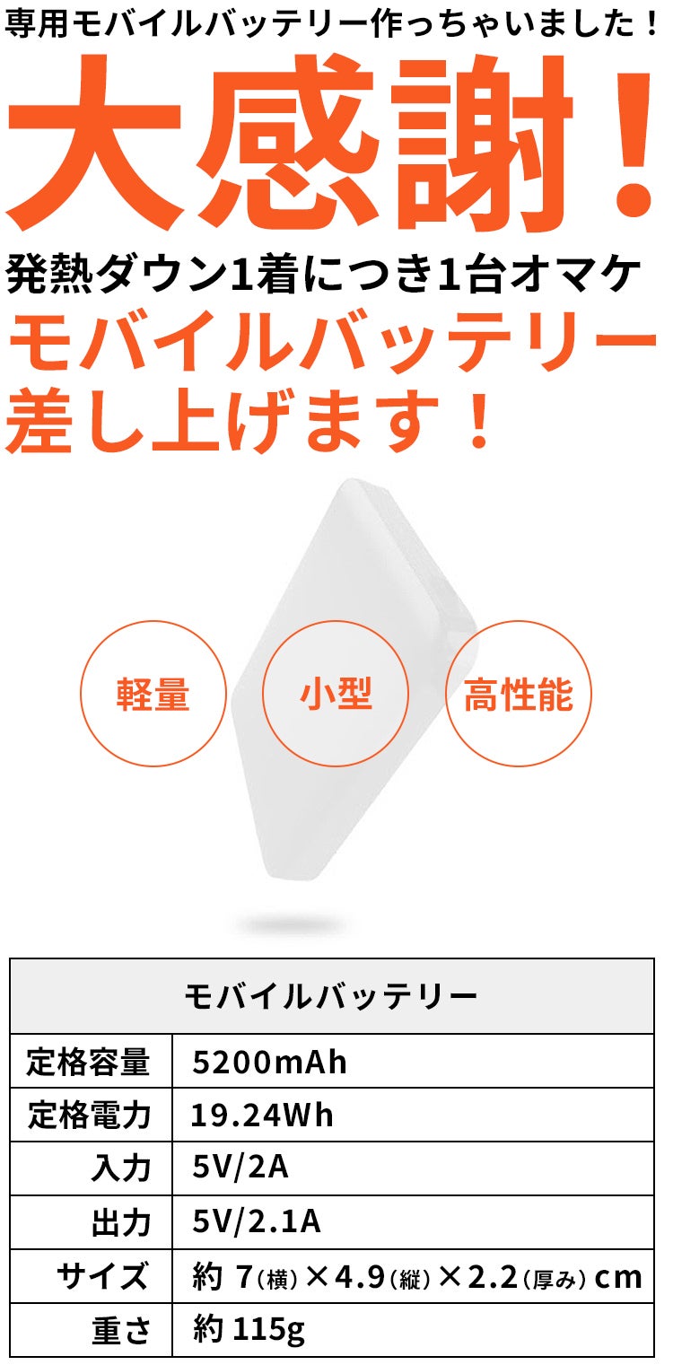 発熱ダウンをさらに快適にお使い頂きたい、そんな思いから、発熱ダウンのために、専用モバイルバッテリーをご用意しました!