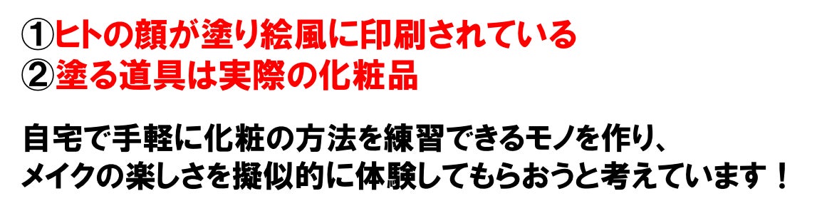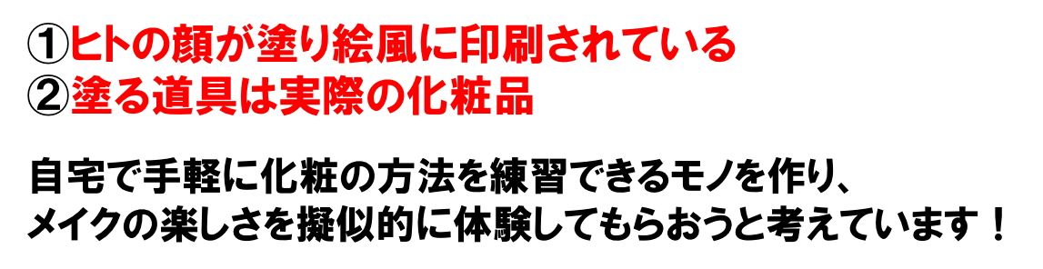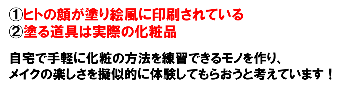 ①メイクを自宅で手軽に楽しく体験・練習できる「塗り絵」を開発すること