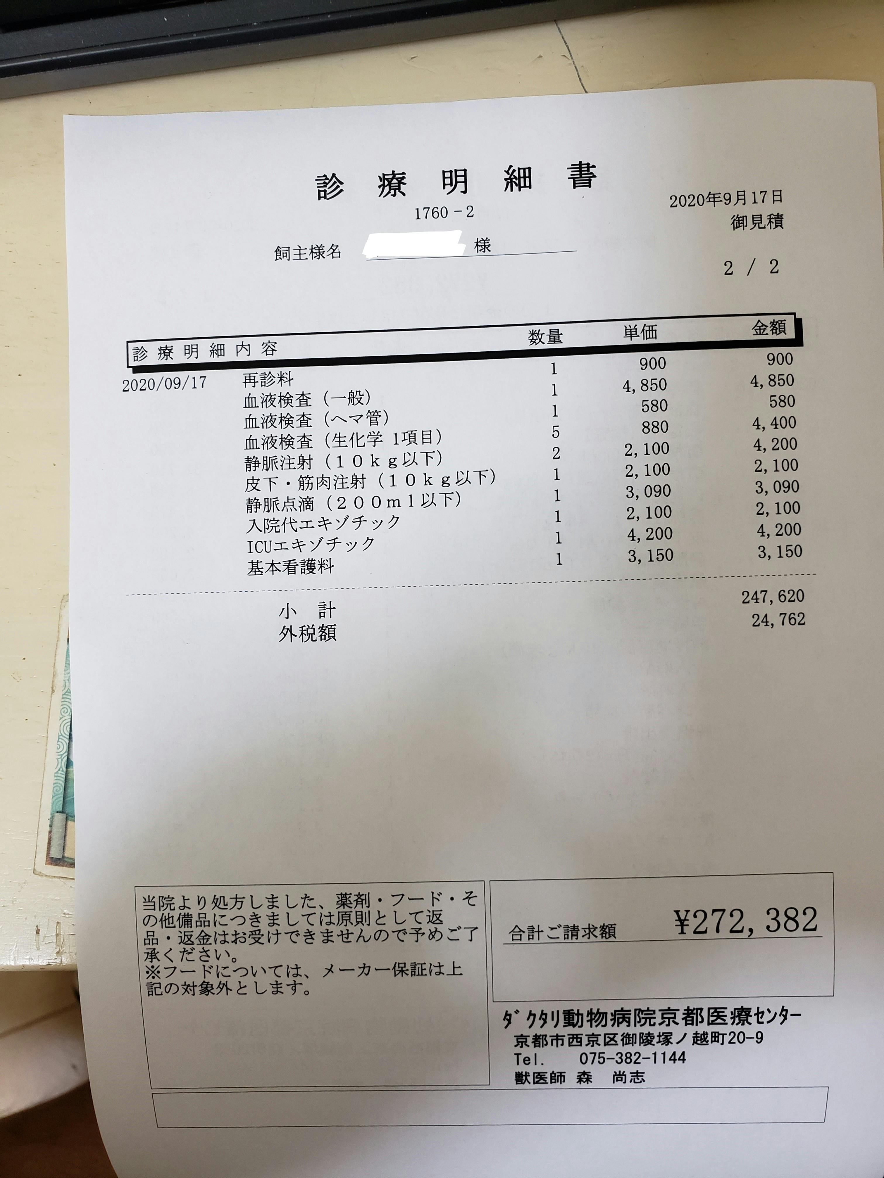 1件目の病院では、触診のみで、特に異常はないとのことで安心していましたが、いつまでたっても良くならず、元気も無く、心配になりセカンドオピニオンへ。