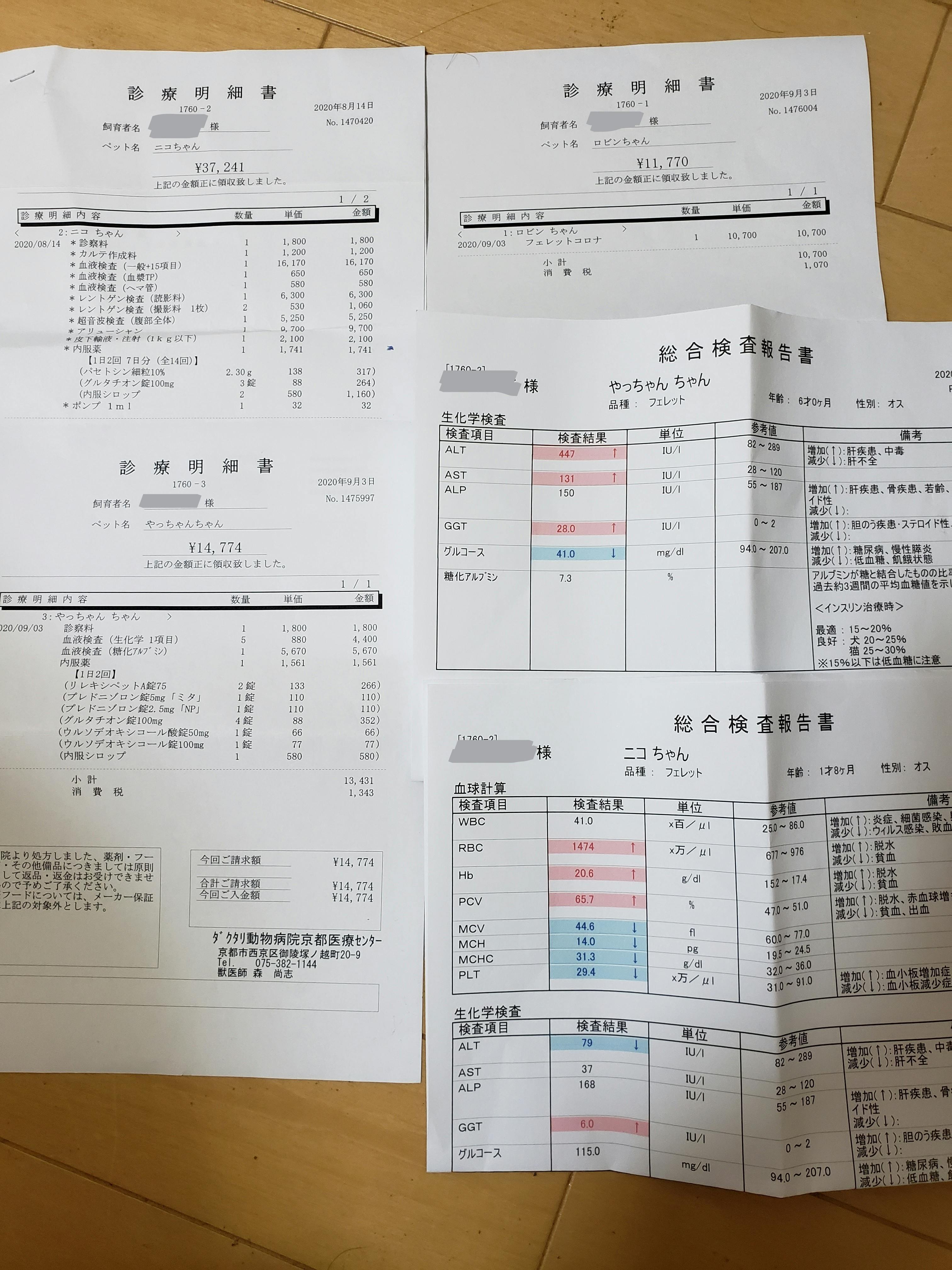 これまでのやっちゃん、ロビンちゃんの通院、治療に加えニコ君の通院治療、手術費用、更に追い打ちをかけるかのように、フェレット同士コロナ感染すると聞き、ロビンも検査したところ、やはり感染していて…