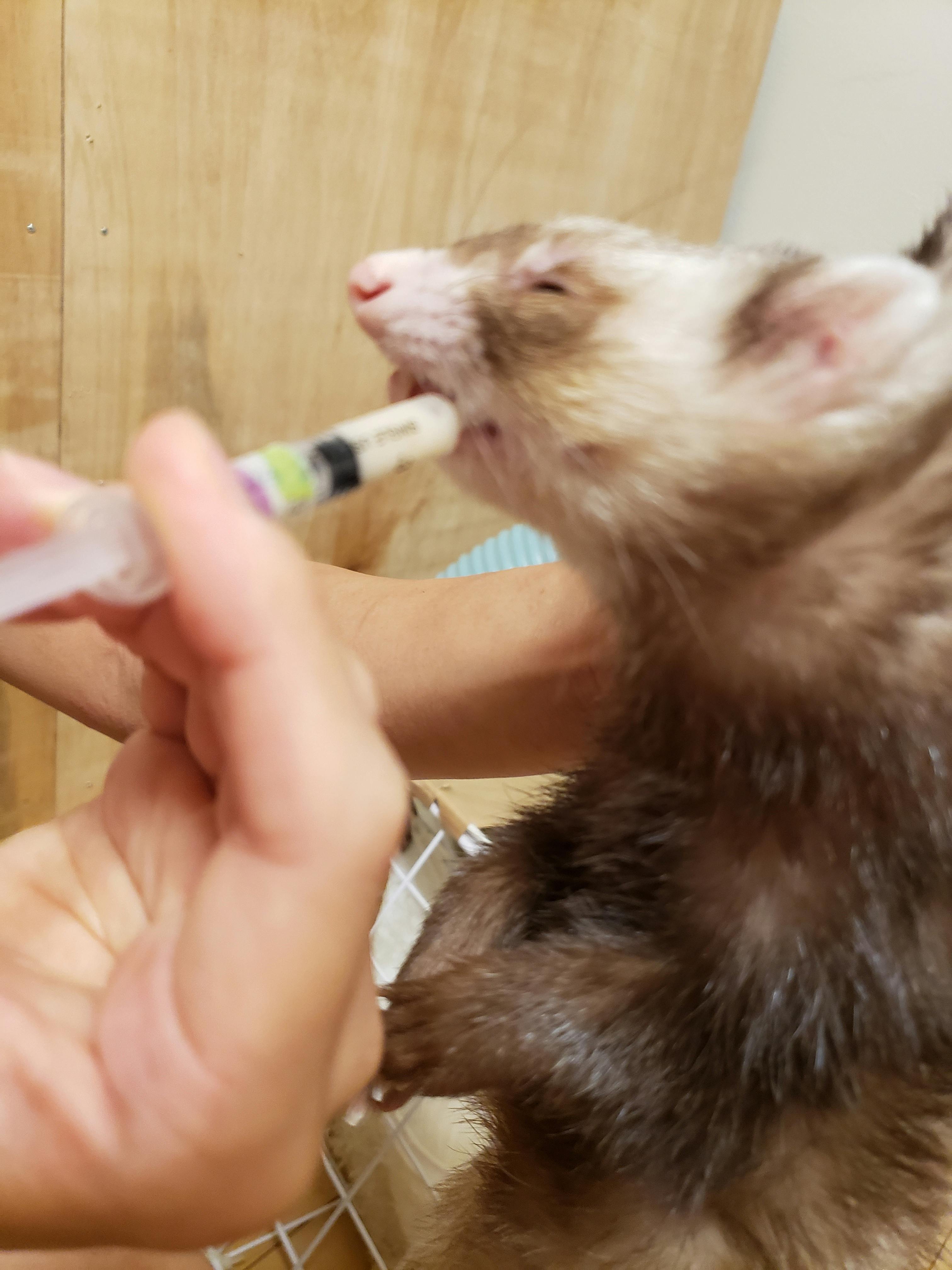 (頑張ってお薬を飲むニコ)