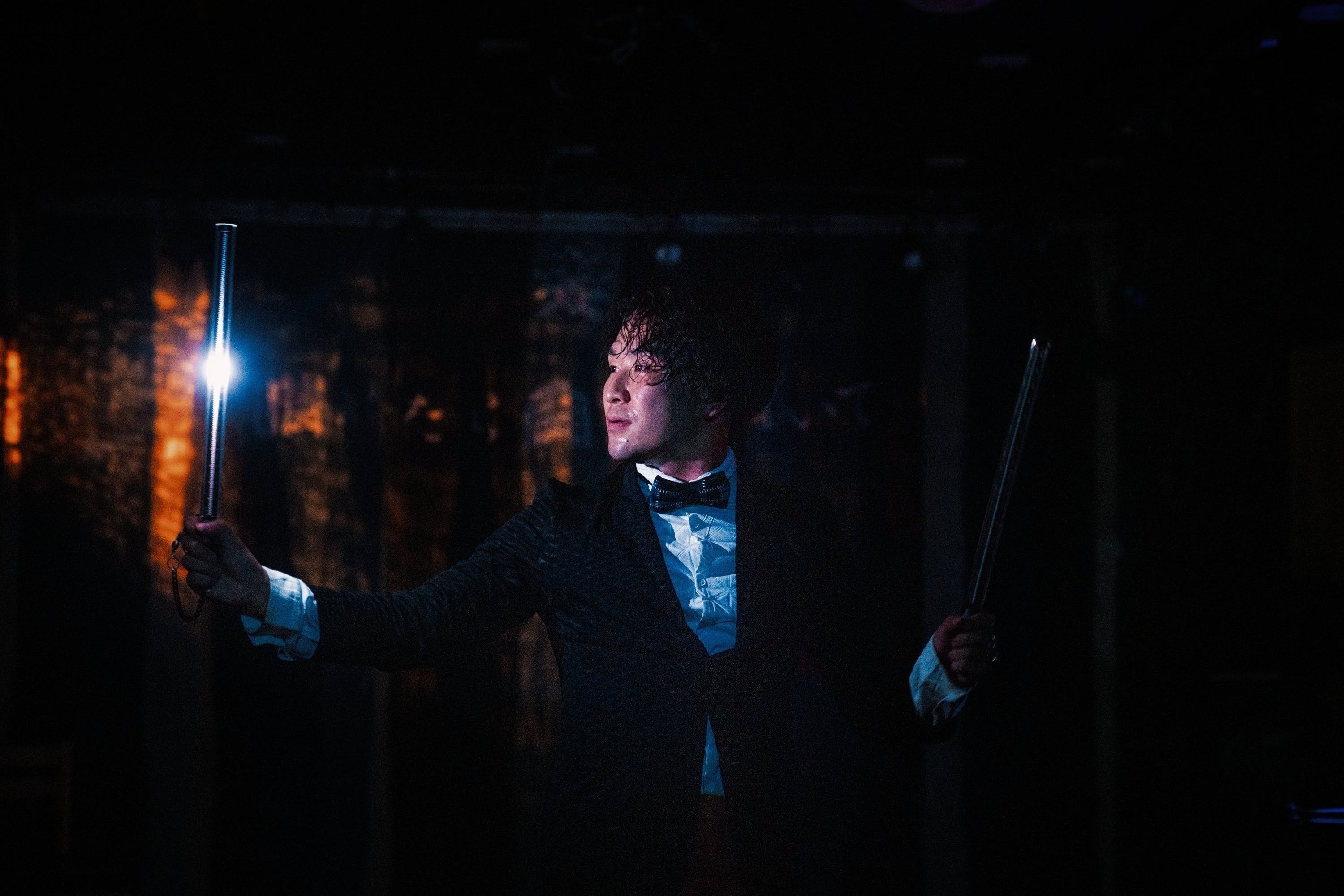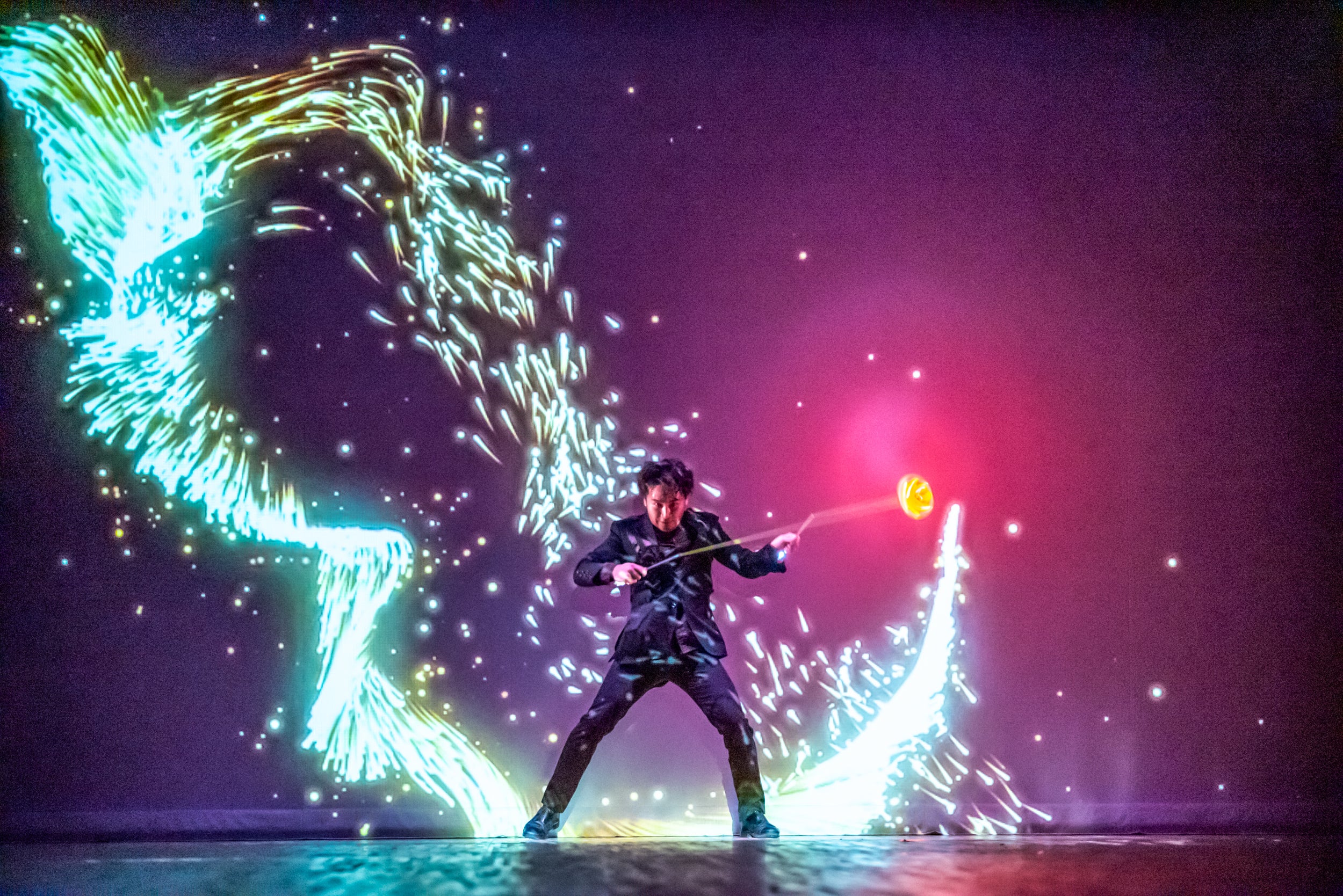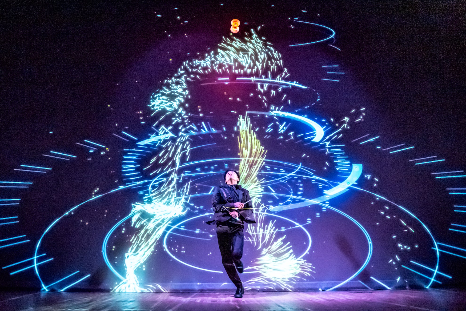 ジャグリング世界大会で優勝した技術力と、固定観念を覆す光と映像の空間演出。