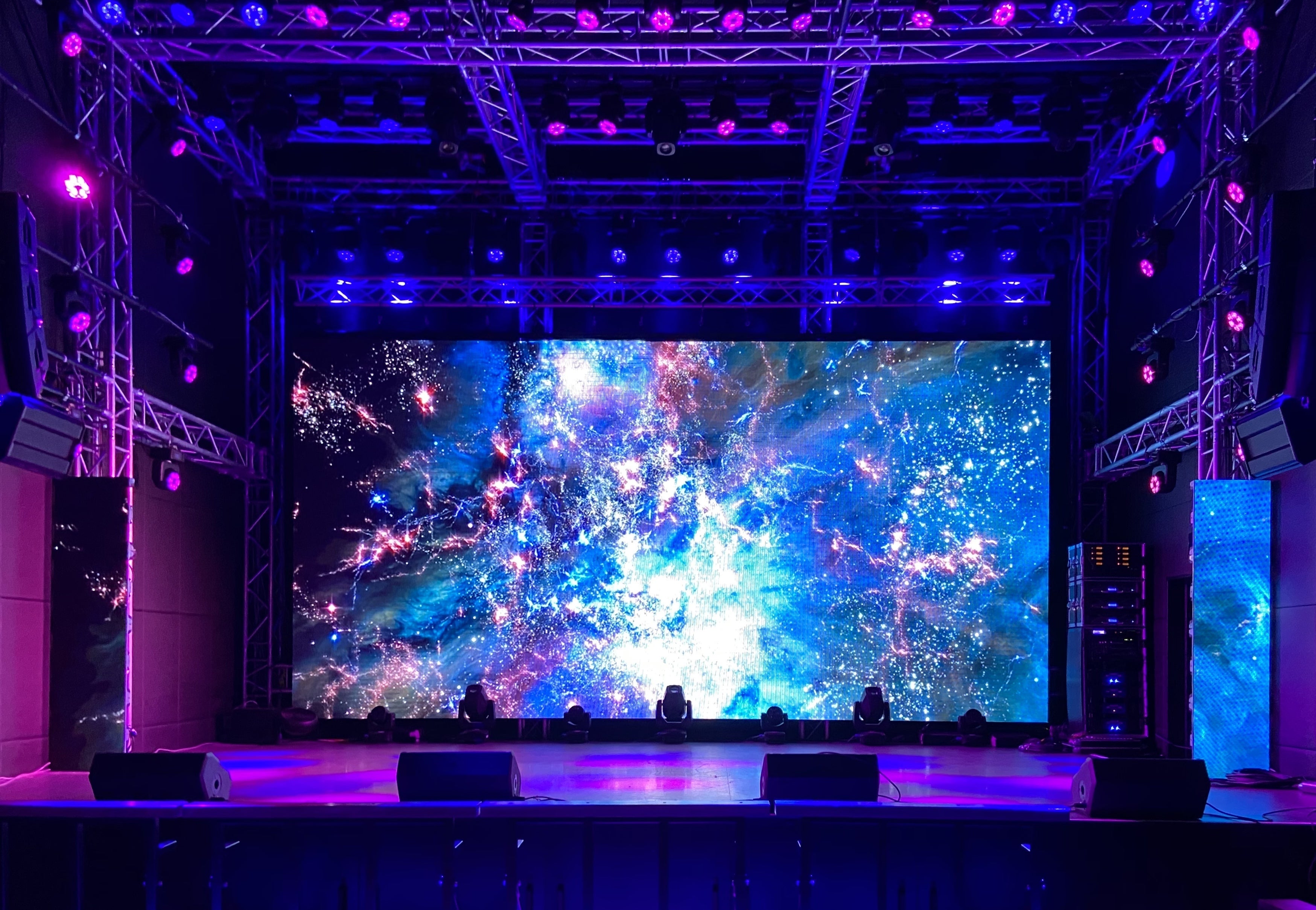 300インチ超えの大型LEDスクリーンとLED照明を完備。