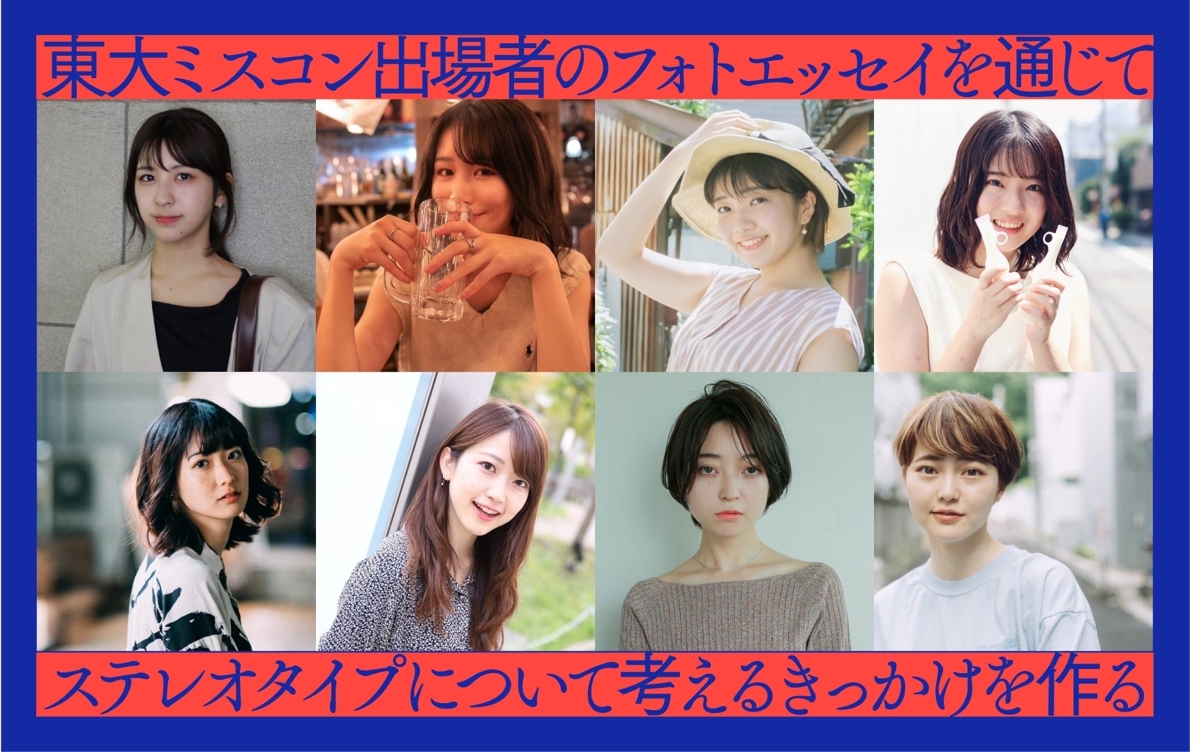 今回はその手段として、『ステレオタイプ』に多くの人が興味関心を持ってくださるよう、ミス東大コンテストの過去の参加者に協力していただき、フォトエッセイを作りたいと考えています。