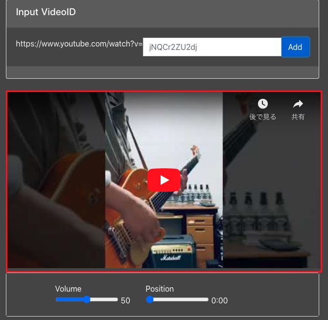 ※実際には動画は作成されずYouTubeAPIのパラメータが埋め込まれた状態で動画を再生します