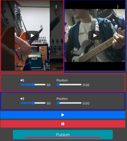 3.再生位置と音量を揃えてPublishボタンを押します。