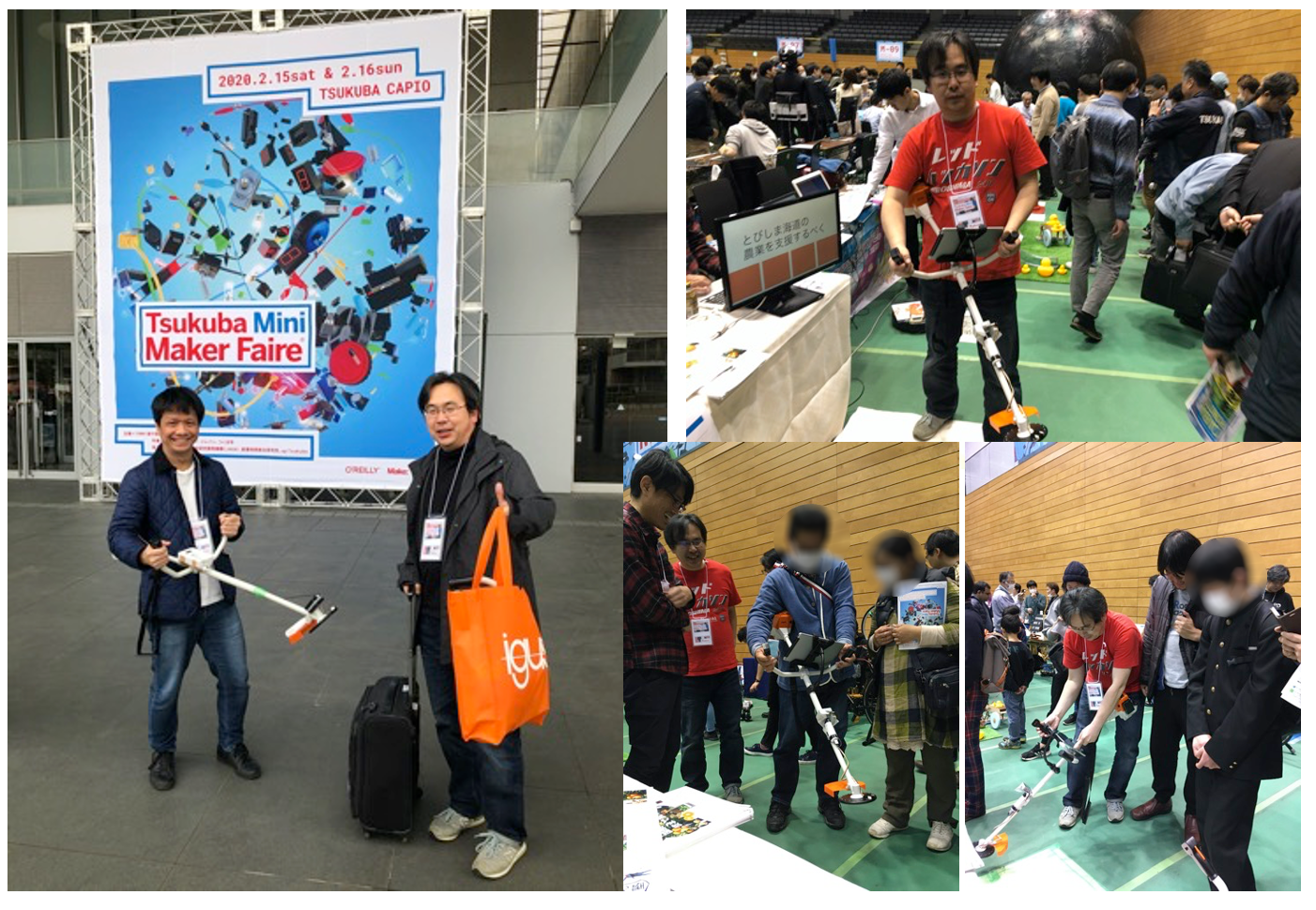 2020年2月茨城県つくば市で開催された Tsukuba Mini Maker Faire 2020 に出展しました。草刈機の実物は大変危険なので、当日は草刈機のおもちゃでデモをしました。