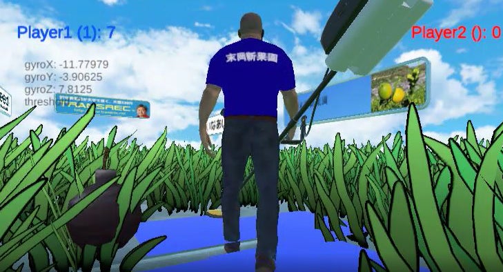 ゲーム画面のキャラクターを操作でき、ゲーム内で草刈りができます。