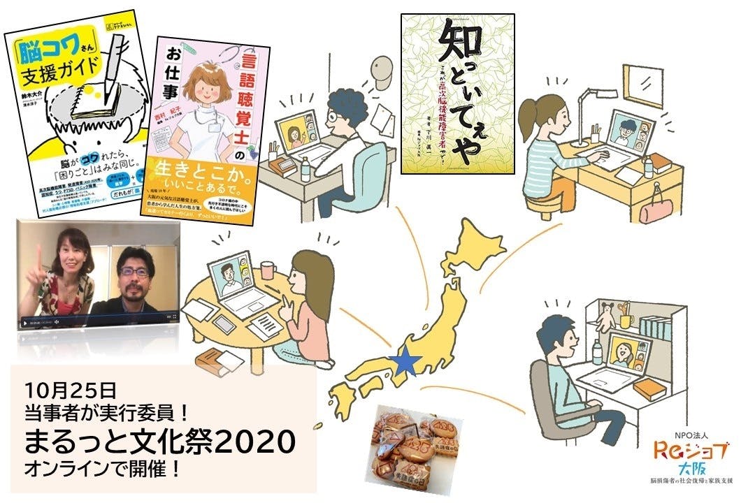こんにちは。脳損傷者の支援をしているNPO法人Reジョブ大阪です。私たちは、設立3年目のひよっこNPOですが、昨年10月、高次脳機能障害、失語症の方が実行委員で「まるっと文化祭」を開催しました。