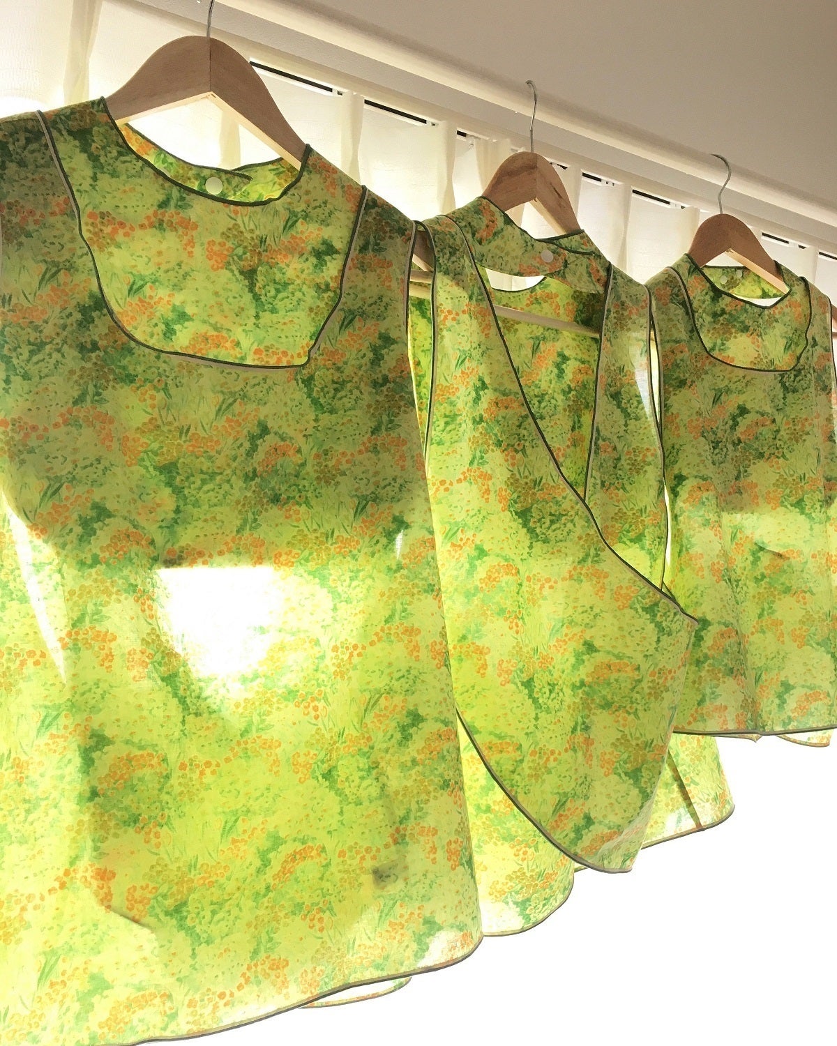 ・丈は動きをさまたげない60cmの短め丈。脚の付け根くらいの位置です。前の裾を引っ張ると、少し前側が長くなり服やズボンがぬれることを防ぎます。
