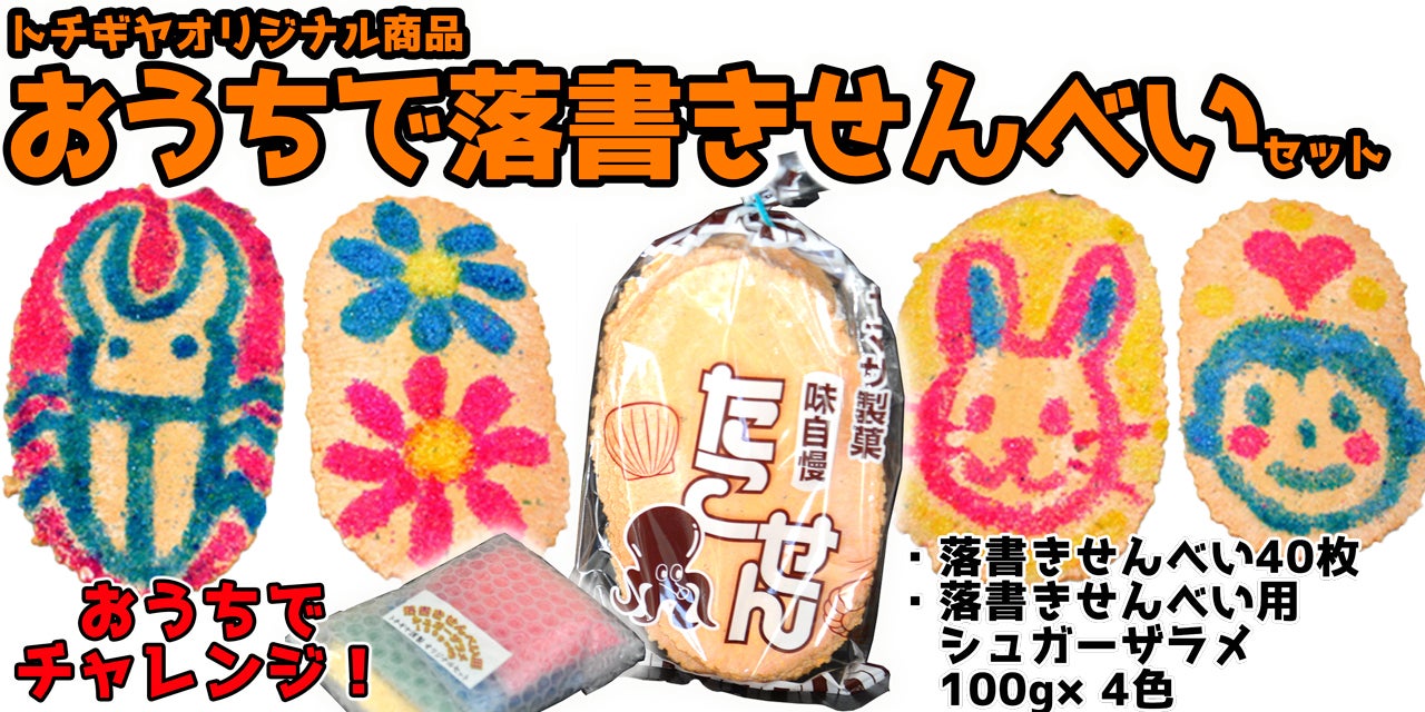 コロナの影響で売上が落込む中、新たにおうちで遊べる商品として企画しました商品となります。落書きせんべい40枚と当社で販売しております落書きせんべい用シュガーザラメを4色を入れたセットになります。※こちらのセットには、落書きせんべい用シロップは付属しておりません。カキ氷用シロップやガムシロップ、砂糖を溶かしても代用できますのでお試しください。