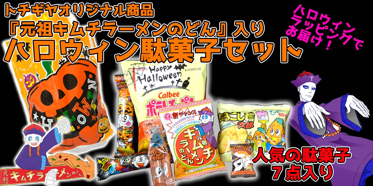 - ハロウィンのラッピング袋にお子様に人気の駄菓子7点を入れセットにしております。