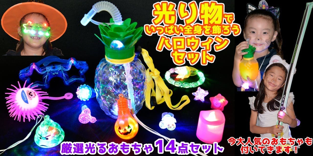 - 今回おうちでハロウィンをテーマとして秋の夜のパーティに身に着けるとピッタリな光るおもちゃを集めました。