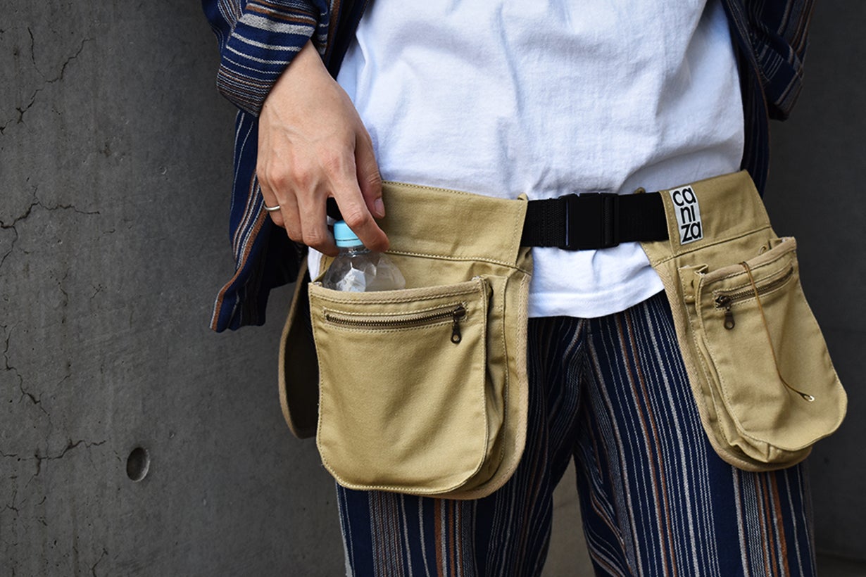 必要最低限のモノをポケットに入れ、腰につけるこのスタイルにより従来のバッグやリュックでは得られなかった快適さを実現しました。