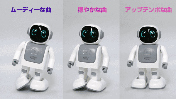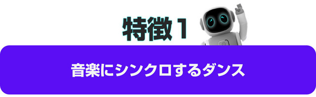 音楽の「テンポ」と「音量」を独自に解析し、プログラミングされた130種類以上の多様なコンビネーションアクションを楽曲に合わせて自動で組み合わせ、ユニークで自然な動きのダンスを踊ります。