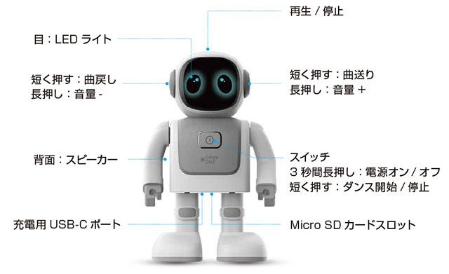 コンパクトながらパワフルで表現力豊かなサウンドを実現。専用アプリを使えば自分だけの振り付けにカスタマイズでき、ラジコンのようなリモートコントロールも可能です。