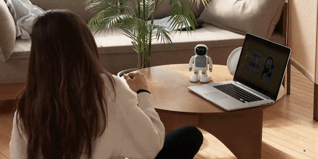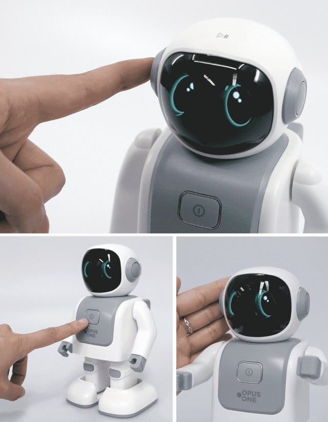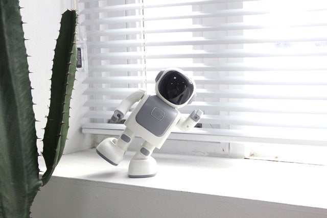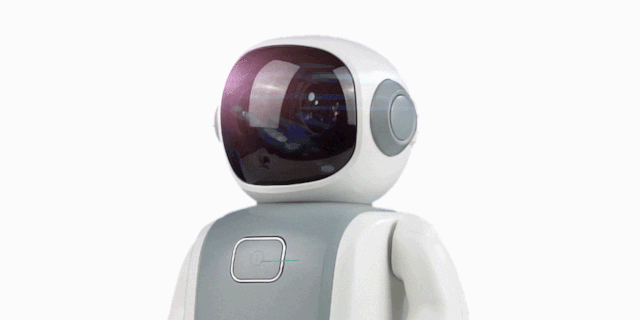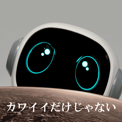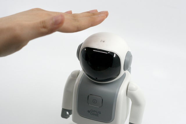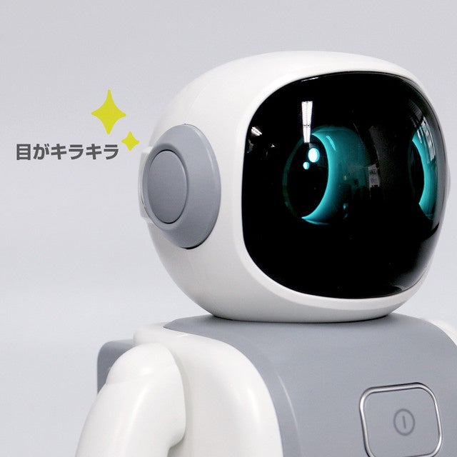 電源を入れると、半透明の顔にLEDの目が浮かび上がります。近未来のロボットらしい魅力があります。