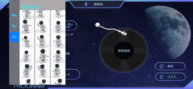 専用アプリには好きな曲に合わせて、カスタマイズした振り付けを保存することができ、いつでも呼び出してダンスを踊ってくれます。