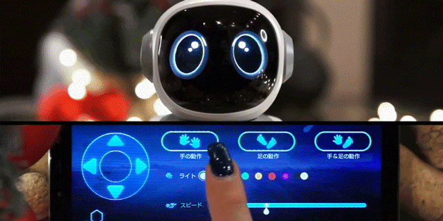 また、ラジコンのように前後左右に動かしたり、目のカラー設定や動作の速度調節などがアプリでコントロールできます。