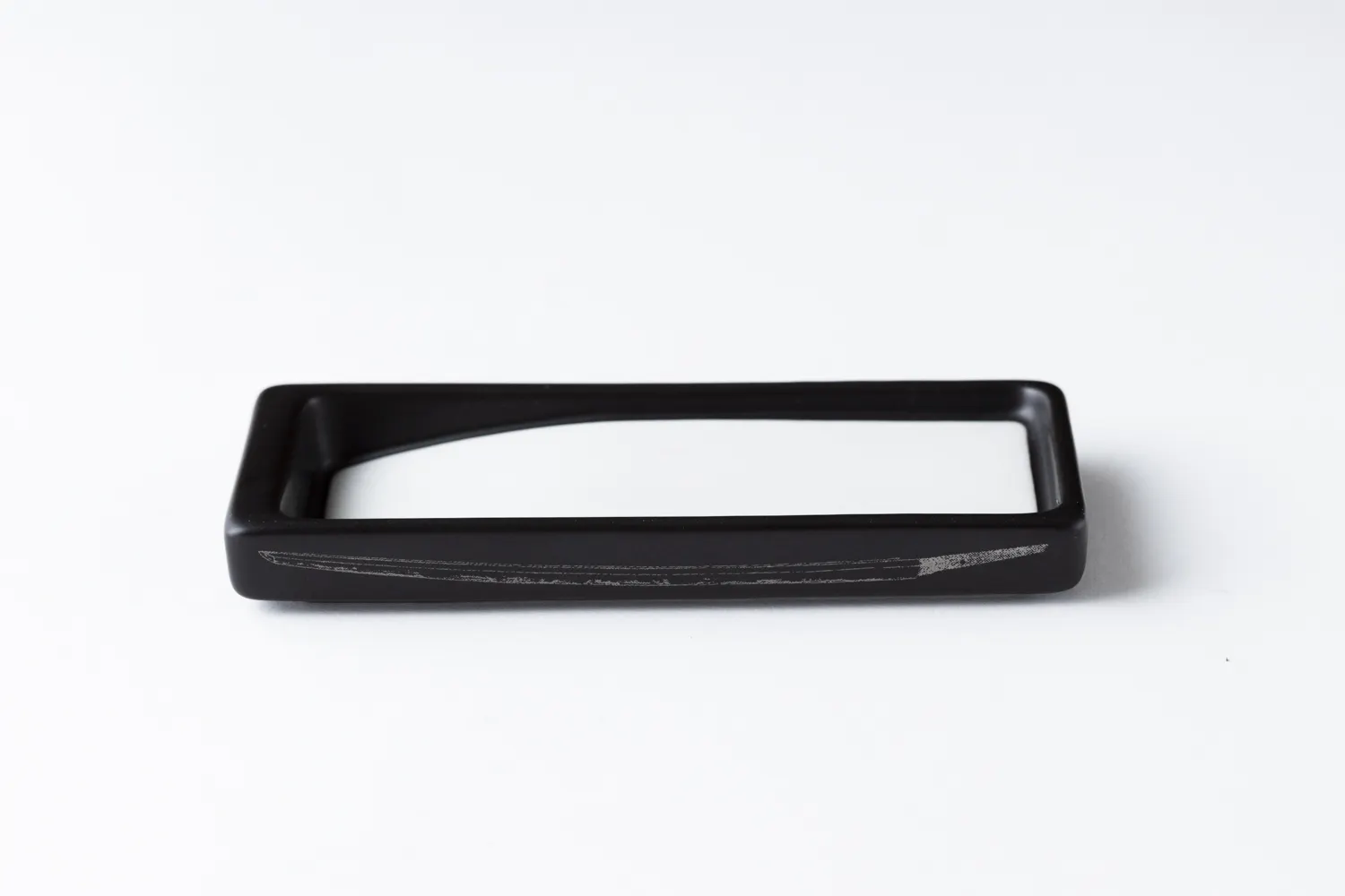 商品説明:「touken」の紙箱ケースのセットです。これ一つで、硯に墨をすり、筆で書き、墨を掃除して片付けるまでが完結できます。持ち運びにも便利です。白い硯ですので、墨が擦れていくのがよく見えます。また、硬く焼き締めていますので黒い墨の色も染み込む事無くすっきりと白に戻ります。9年の試行錯誤の末に辿り着いた「擦り心地」「お手入れのし易さ」をお楽しみ下さいませ。