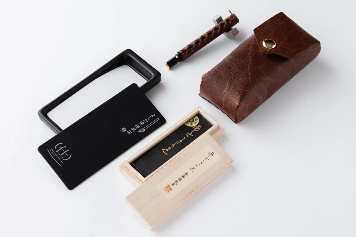 コラボレーションのきっかけになった、よしだ書道具店が開発した「プチ硯セット」はコンパクトでありながら利便性が素晴らしく、書を普段使いするなら、持ってこいの商品です。
