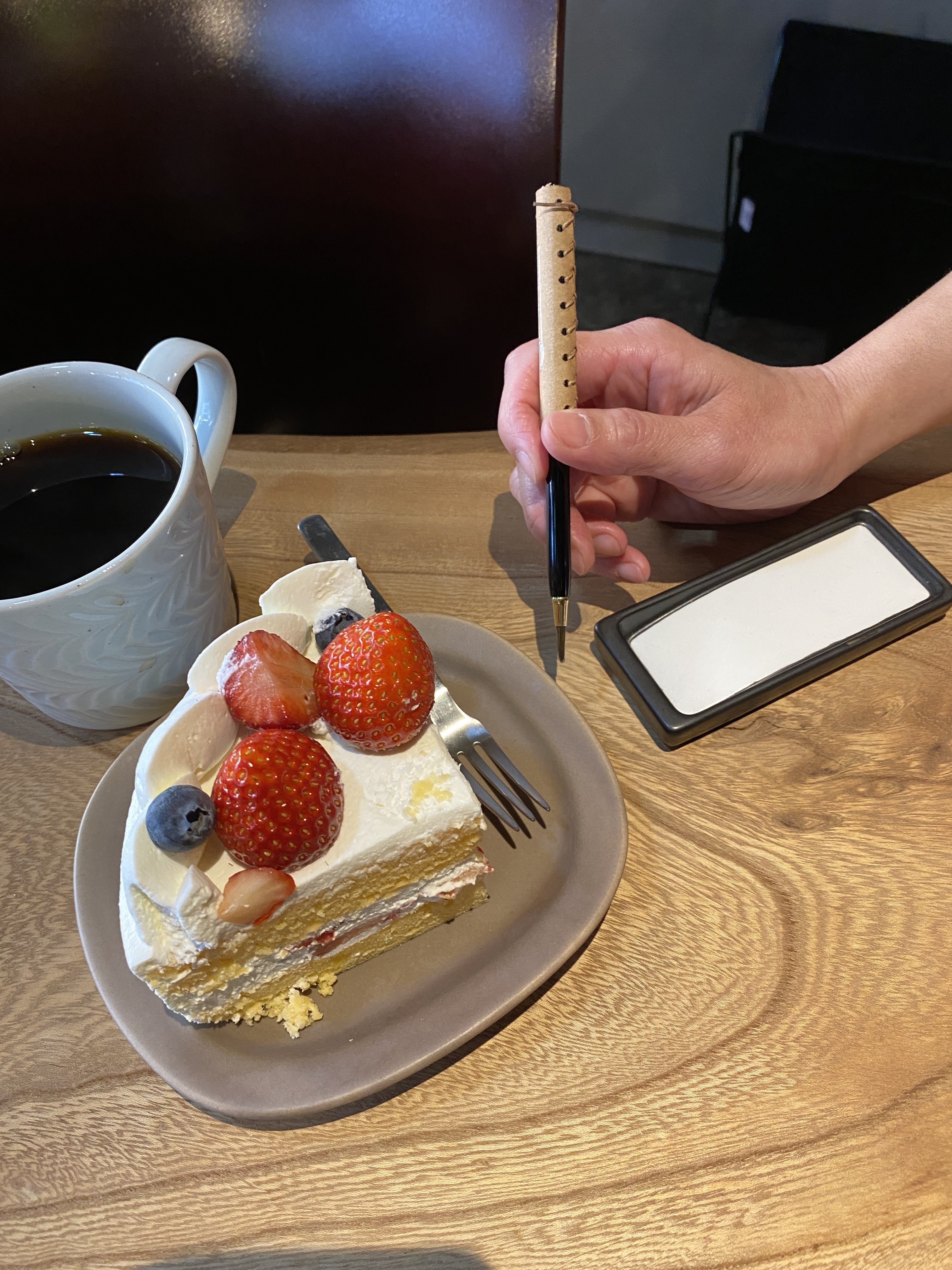 カフェで、「ケーキとコーヒーと書」というテーマで写真を撮ってみました!