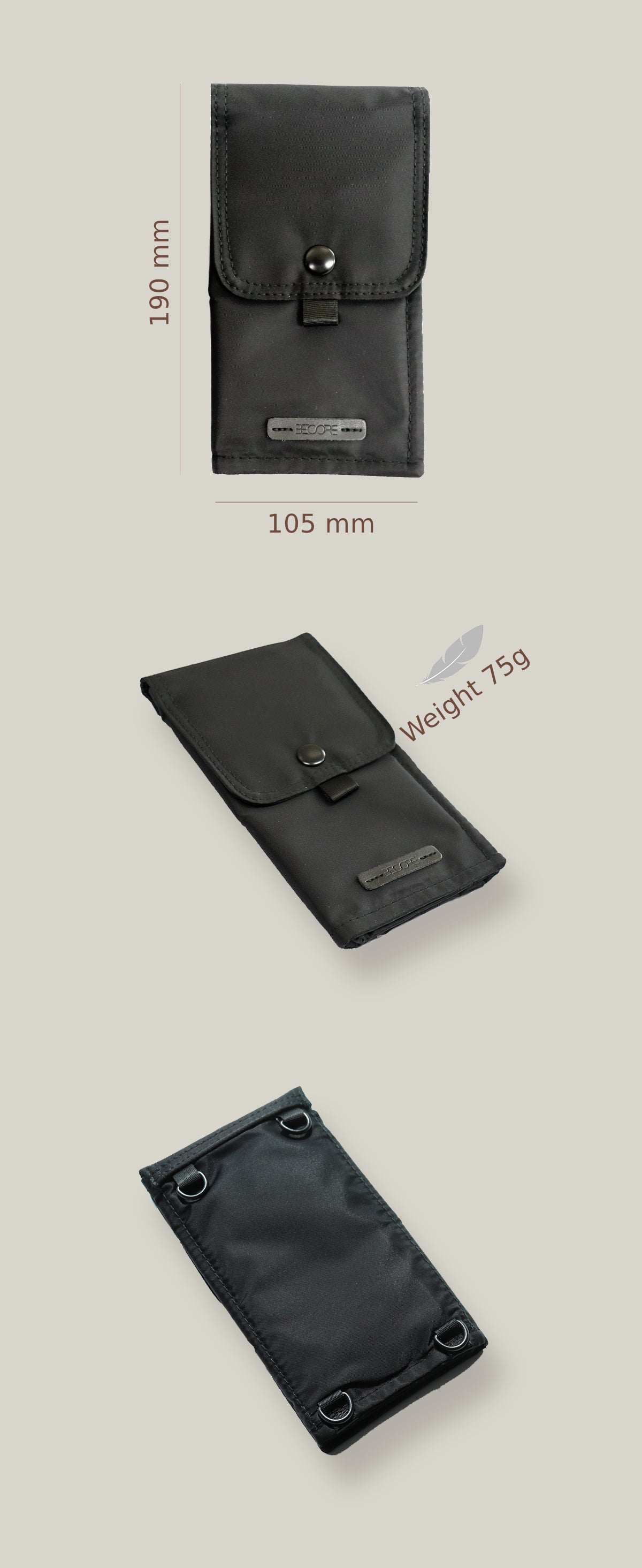 『ウォレット・スリング』は、軽量でコンパクトな上に、おなじみのスナップボタンとベルクロデザインを採用することにより、単純で容易に操作できる構造になっています。