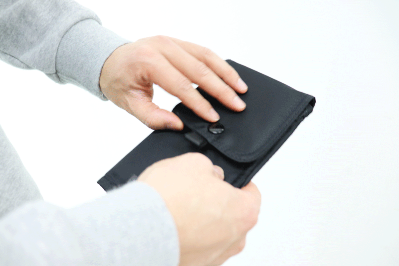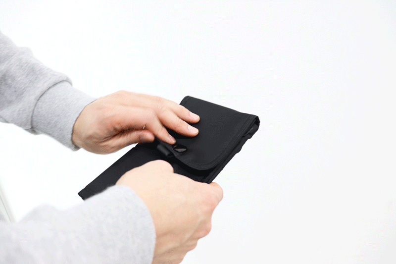 『ウォレット・スリング』は、軽量でコンパクトな上に、おなじみのスナップボタンとベルクロデザインを採用することにより、単純で容易に操作できる構造になっています。