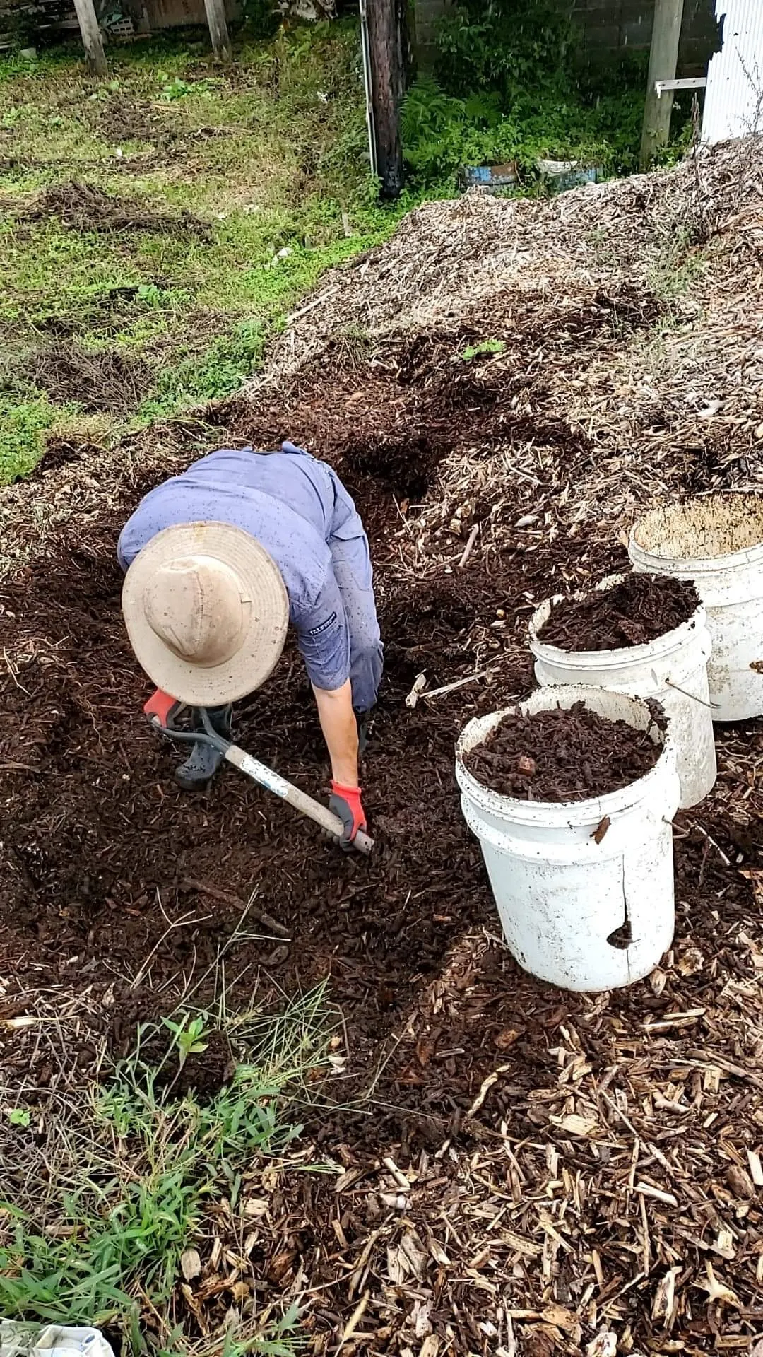 植物工場のプランター120個分の培土用堆肥を貰いに山林樹木伐採をしている知人の所へ、バケツ30杯ひたすらスコップで、トラックまで手運び、もう息切れ切れ。もっとも運んだのはいつも手伝ってくれるなコヤマン27歳。