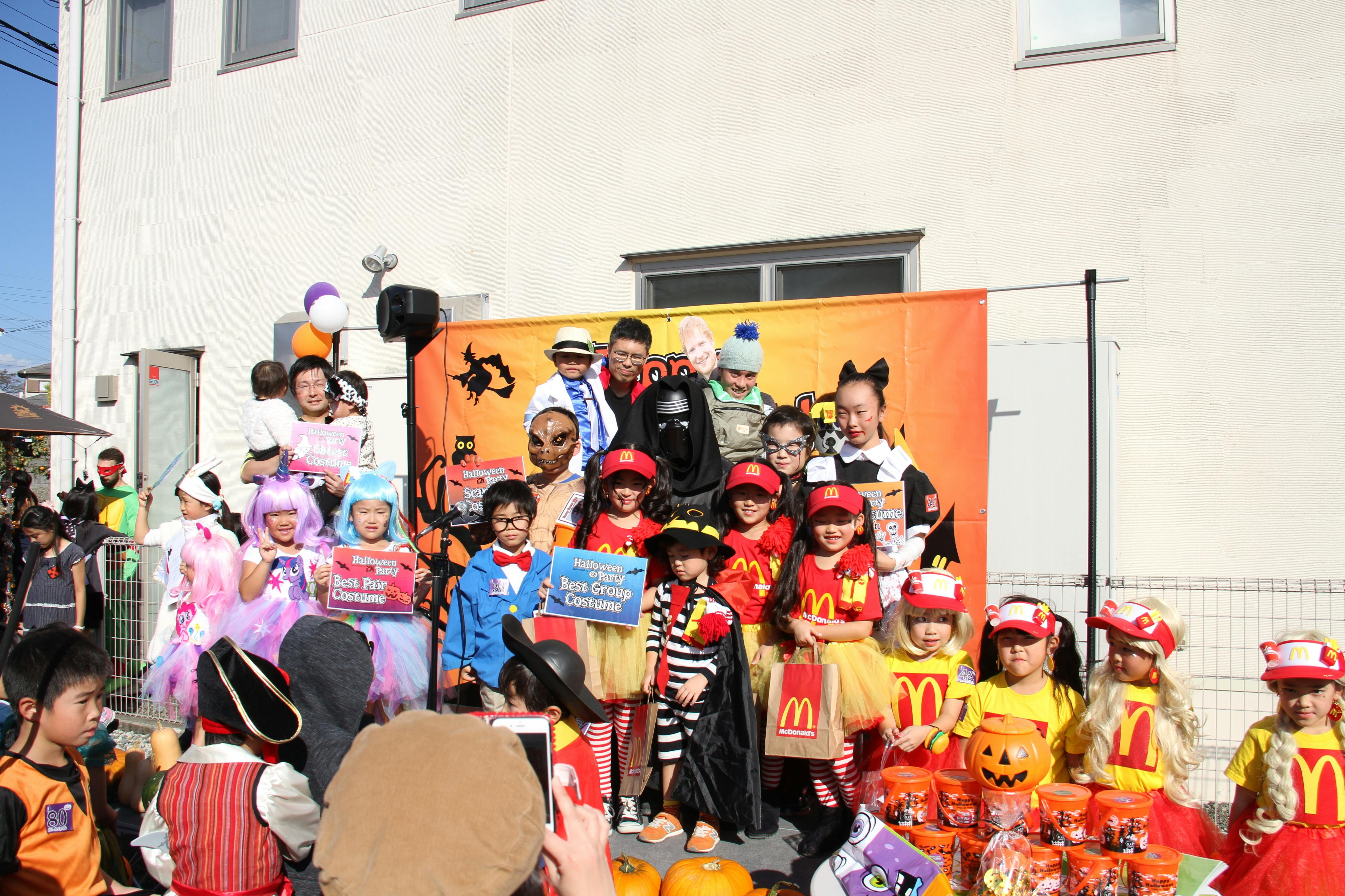 ハロウィンパーティは、アイトゥアイで一番大きなイベントです。子供たちは魔女、吸血鬼、プリンセスやスーパーヒーローなど好きな仮装をします。コスチュームコンテストや、地図を手がかりに事前にご協力いただいている地域の方々の家々を訪ねるトリックオアトリートを行っています。家に着いたらドアをノックし、「トリックオアトリート!」(お菓子をくれないといたずらしちゃうぞ!)と言いお菓子をもらいます。お菓子を渡してくれるお宅は、お忙しい中、ボランティアで引き受けてくれています。お家をデコレーションしたり仮装したりと、もう何年も引き受けてくださるお宅ばかりです。ハロウィンパーティは地域の方々の暖かさに触れることの出来る素敵なイベントでもあり、今では子供たちが一年中待ち遠しいイベントとなっています。