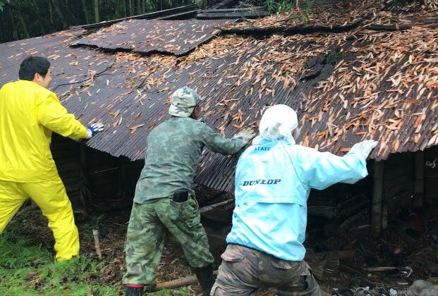 裏庭の鳥小屋解体を地元の方が手伝ってくれた
