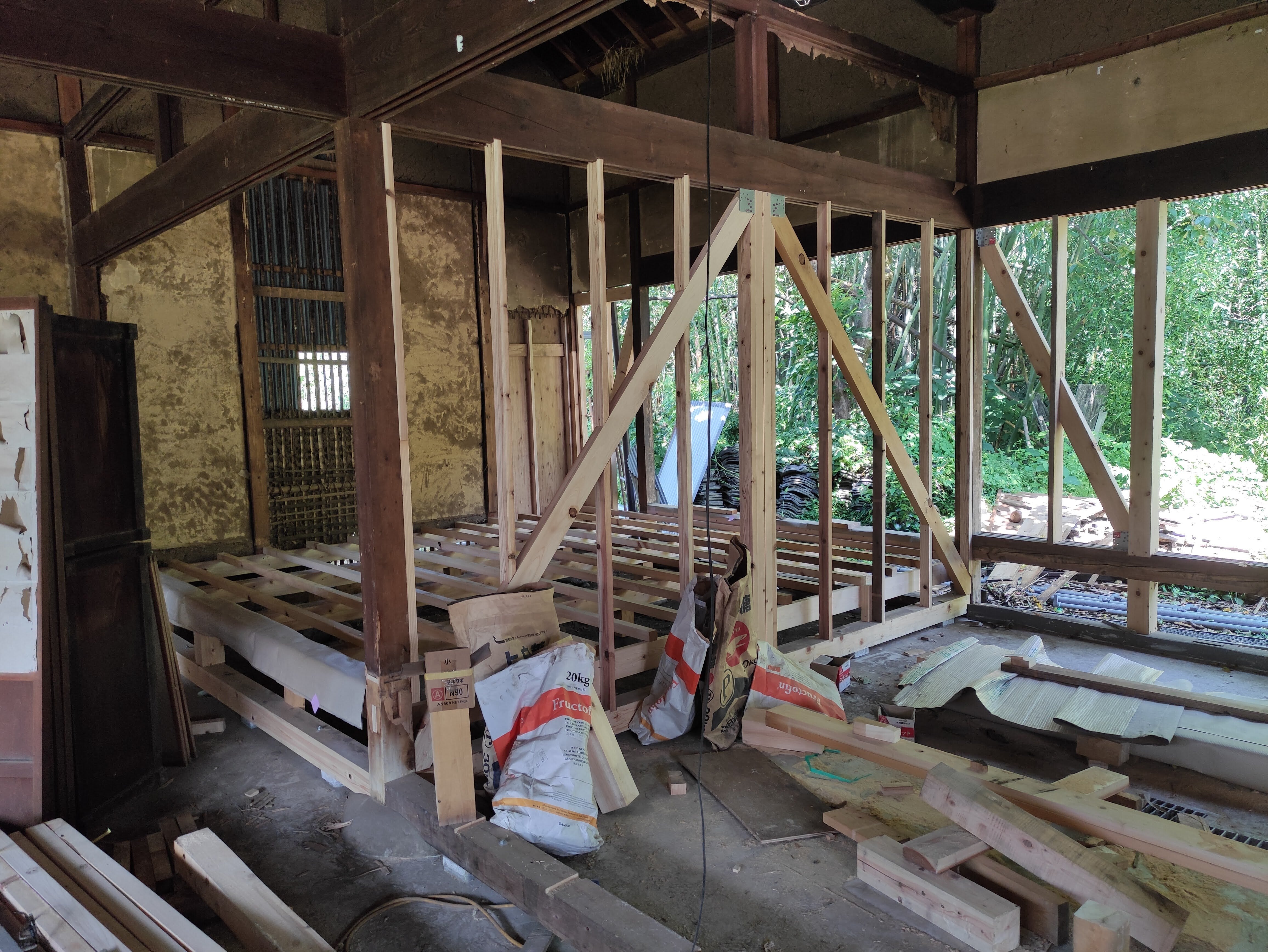 他にも天井を剥がしたり、梁や柱の掃除、裏の竹やぶの整備など、日本とフランスの建築方法の違いに戸惑いながらも地元の方や友人たちに助けられながら改修活動を進めてきました。