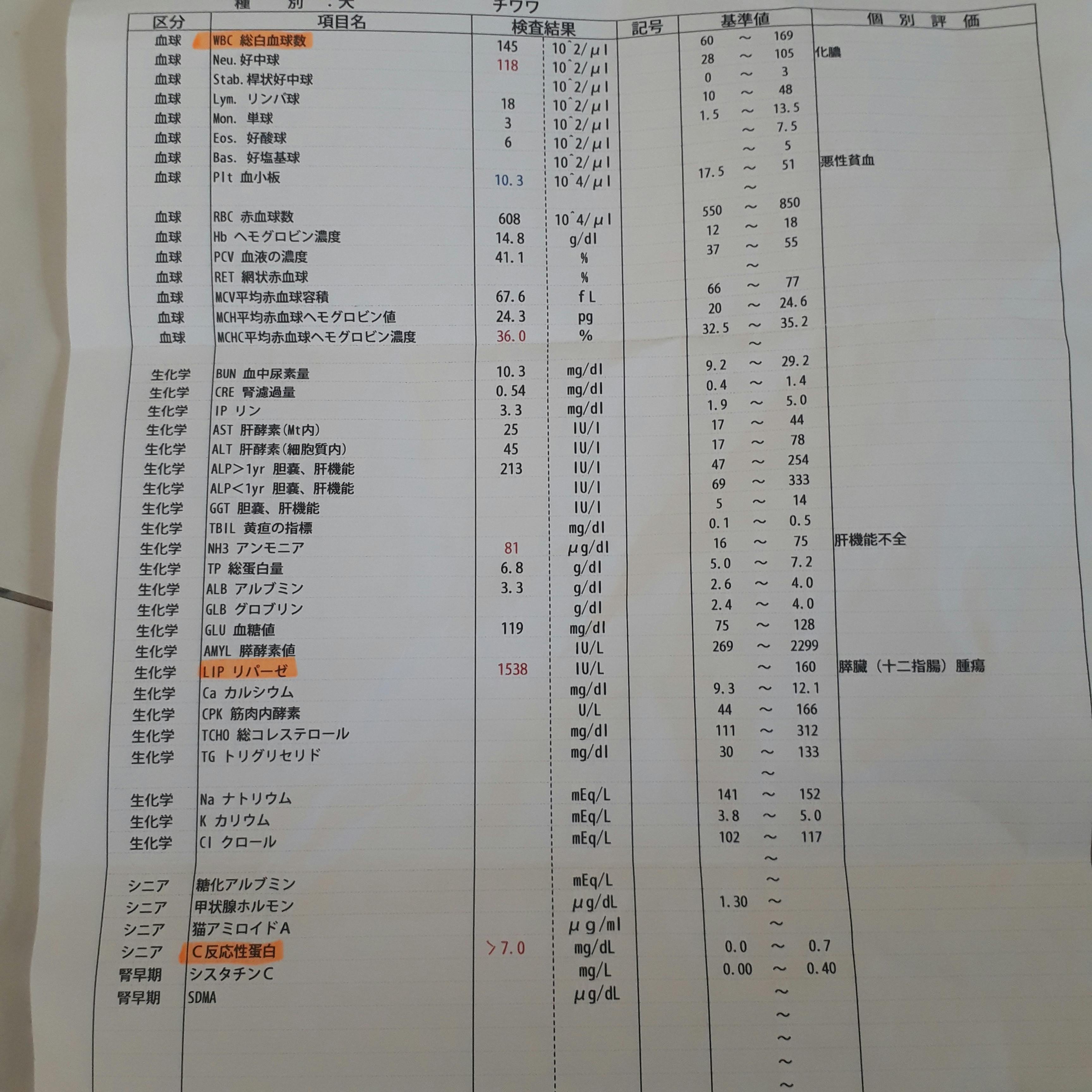 すると、膵臓・子宮に問題があるということが判明致し、膵炎を治さないと子宮の処置ができない。放置したら、よくて3週間の余命宣告を受けました。
