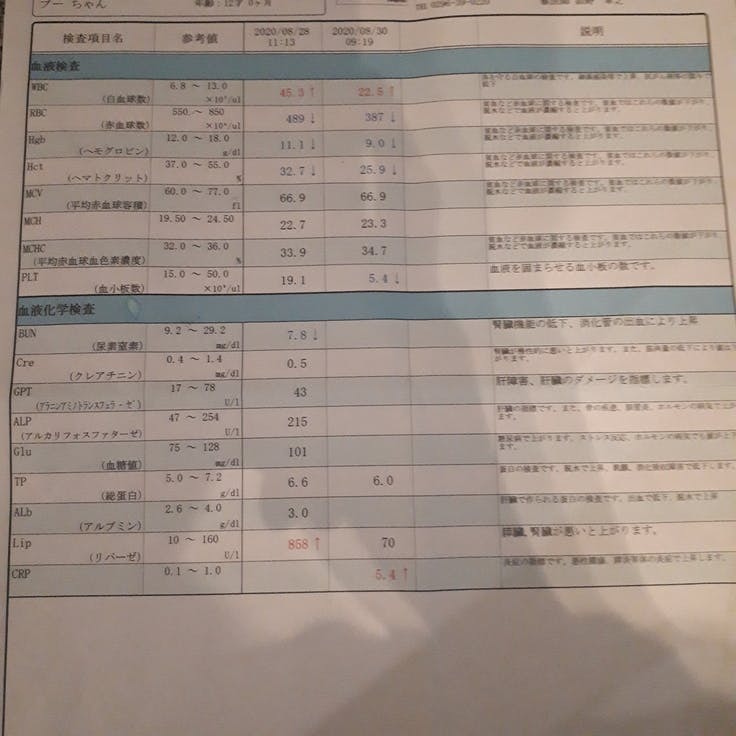 8月28日よりB院で膵炎の治療と、子宮蓄膿症の抗生剤治療の為、