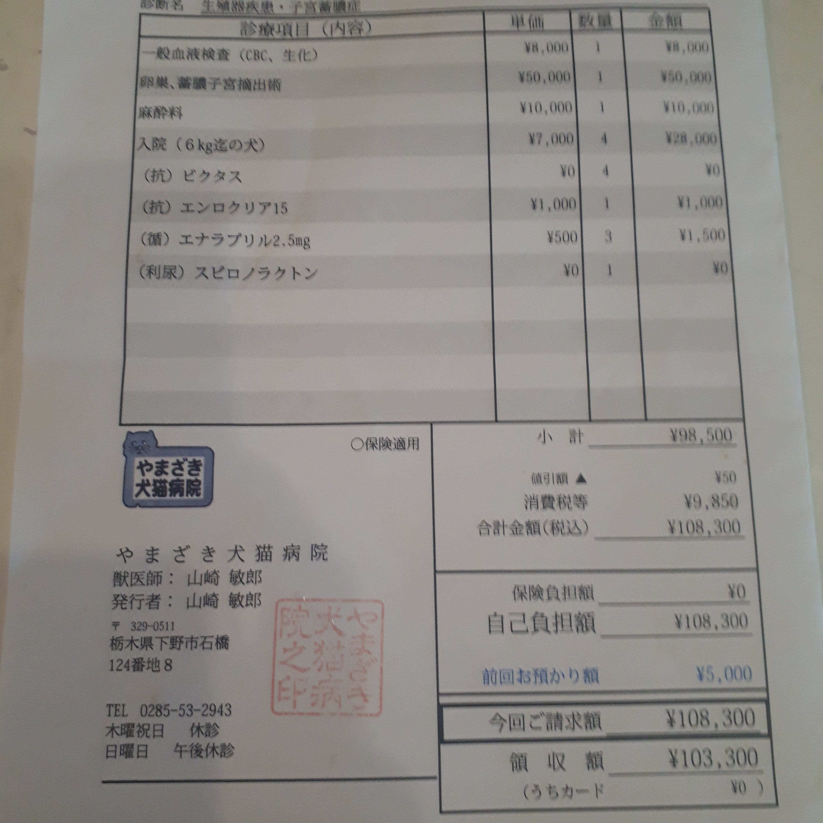 獣医師は、手術できる可能性があるから助けましょう。お支払いは一年かけて返済してくださればいいですから・・・とそんなことをおっしゃったと思います。半分、気が動転していたので、今ようやくここに転記ができています。