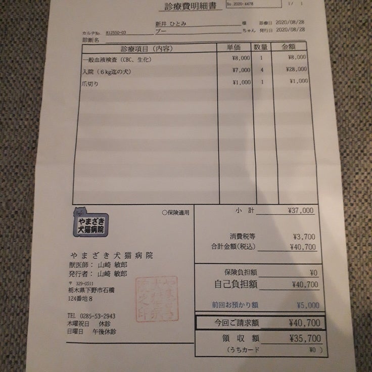 すぐに緊急入院でした。「こんな時になんですが、治療費はおいくらかかるのでしょうか?」私はそんな事を獣医へ聞いてしまいました。すると・・・。