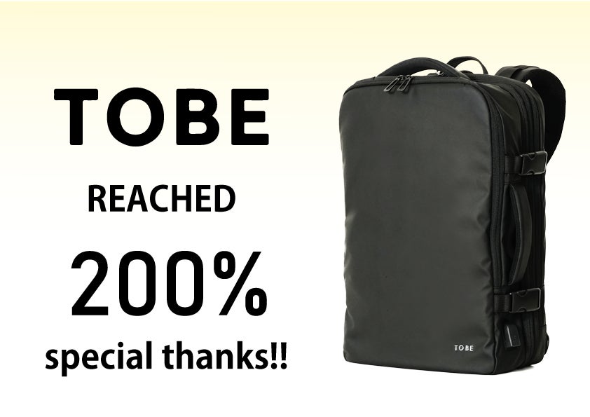お世話になります。TOBEプロジェクト高橋です。この度プロジェクト達成200%を迎えましたのでご報告させて頂きます。多くの方にご興味をお持ちいただきご支援いただきまして誠に感謝しております。このプロジェクトをもっと皆様に知っていただき街中でよく見かけるバッグの中に弊社のバックパックが選ばれるようになりたいと思います。本当に使いやすいバッグですので是非とも宜しくお願い致します。TOBEプロジェクト高橋