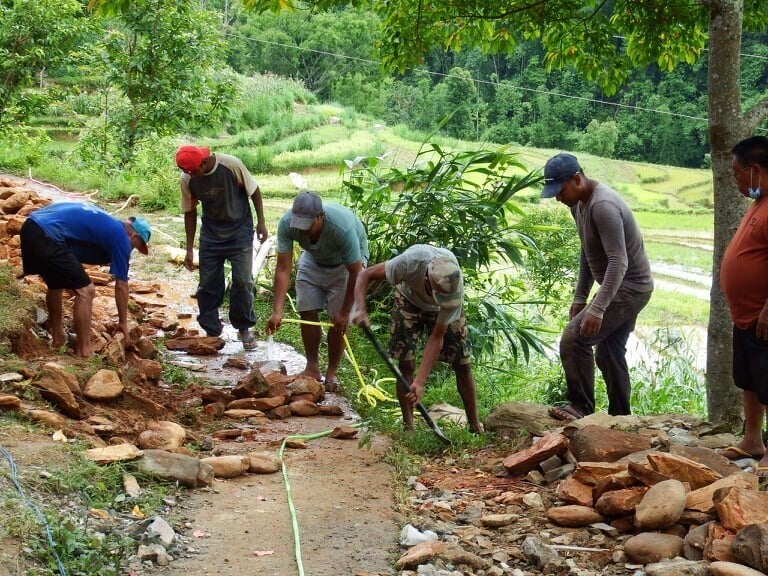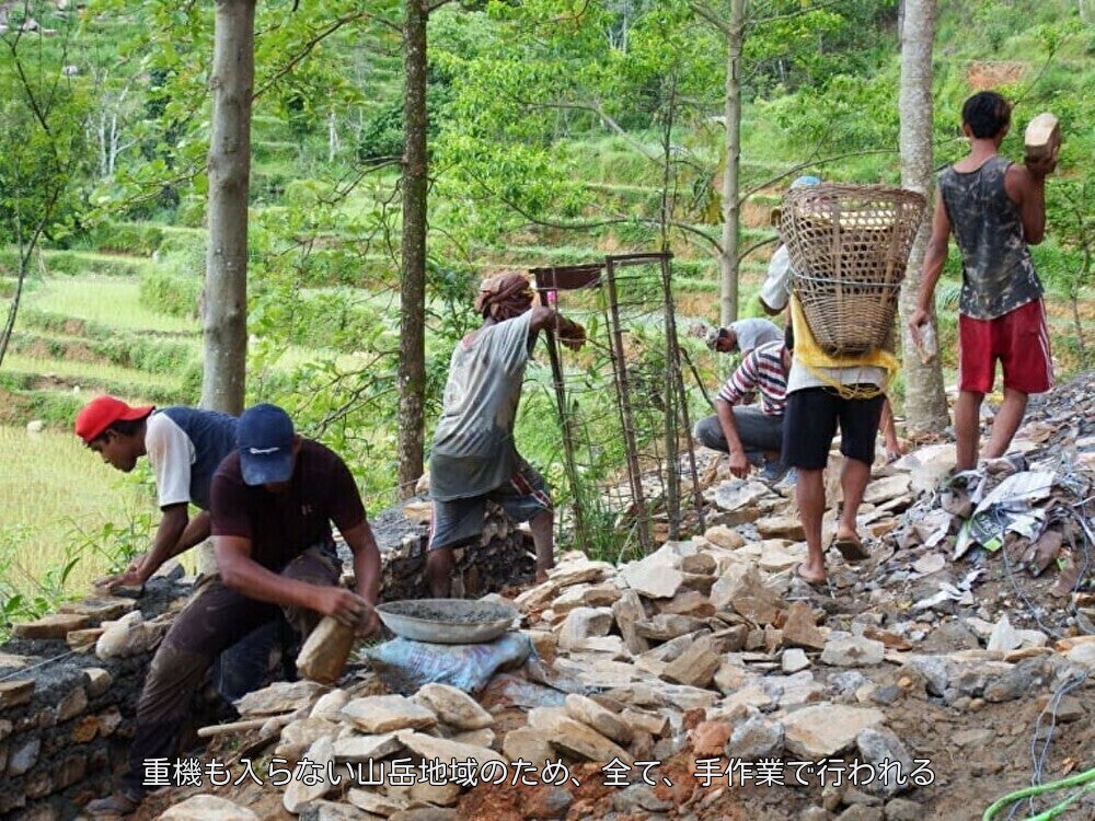 重機が入らない山岳地域のため、資材の運搬はじめ、
