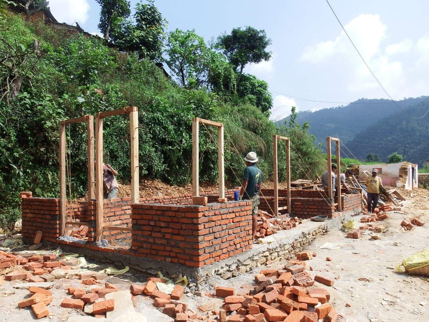 図書室の建設を行っています。レンガ造りの図書館は、とても雰囲気があります。