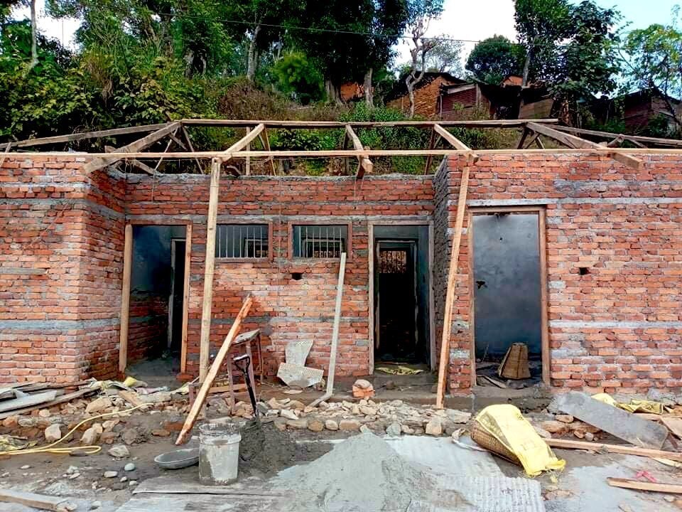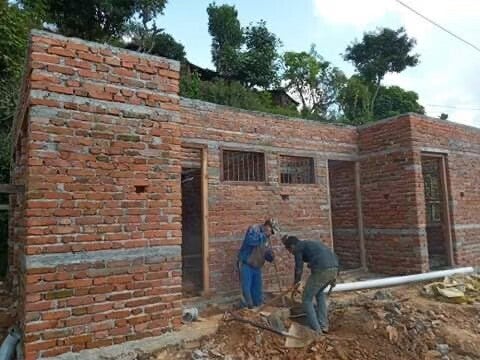 ポカラの小学校の図書館がだいぶ出来てきました。 レンガの表にコンクリートを塗り、またその上からレンガ。もちろん、骨組みとして鉄筋も入ってます。
