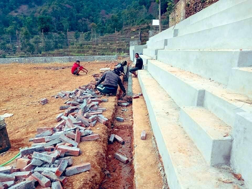 この村では始めての人工芝によるグランドになります。村の人たちも興味津々で楽しみにしてくれています。