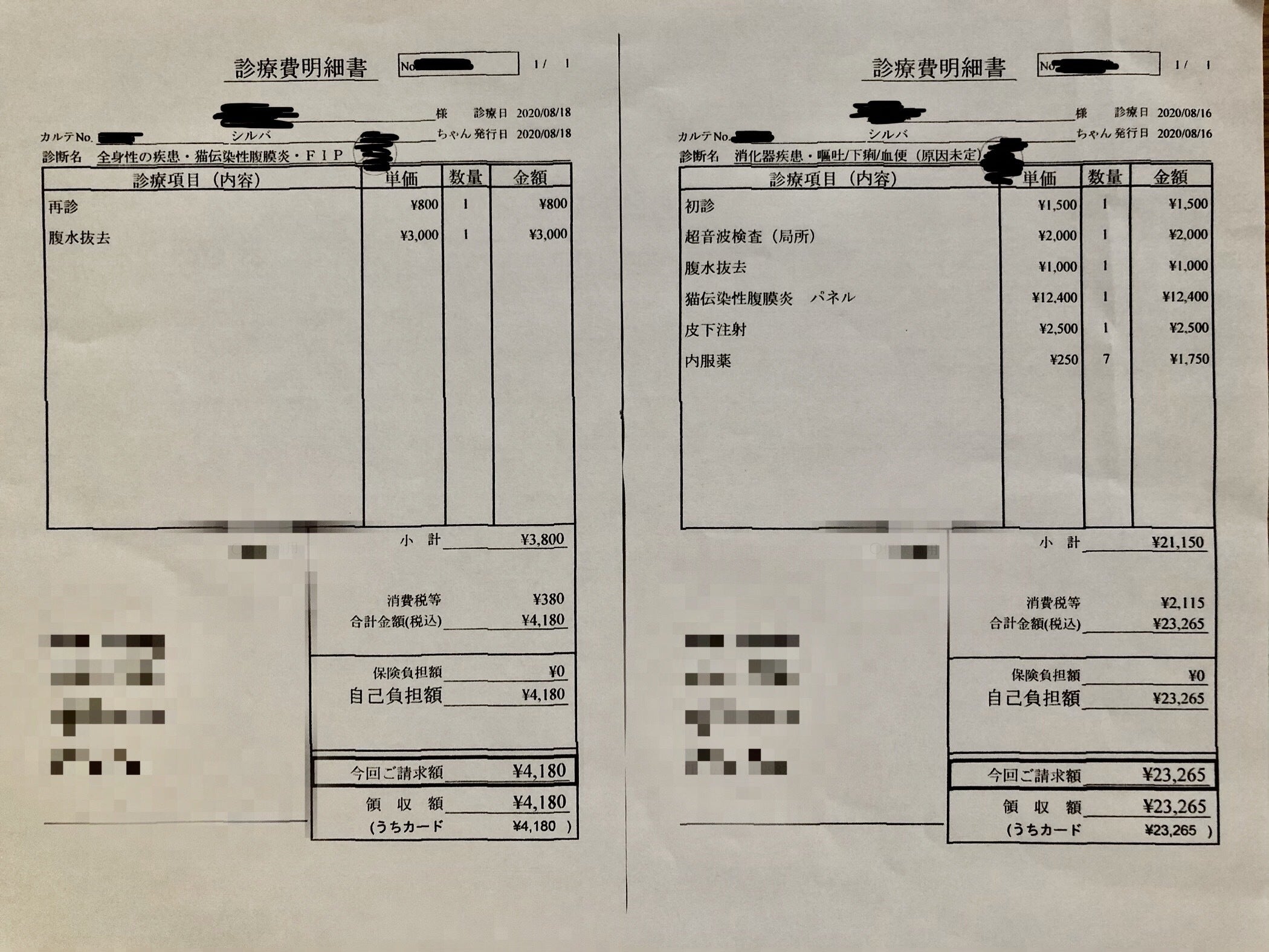 しかし、飼って1か月も経たないうちに保険適用外のFIPになってしまったことから、