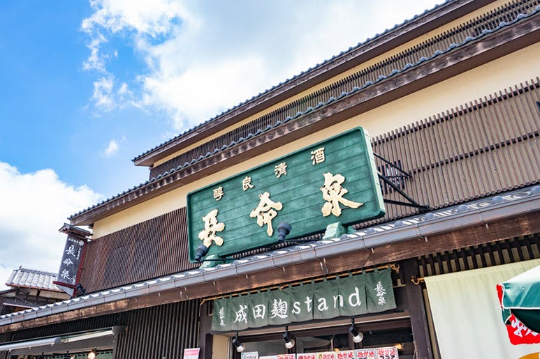 成田山新勝寺の近くに酒蔵を構え、百薬の長と言われた井戸水から造られるのが代表銘柄「長命泉」。 健康長寿のお祝いなどに人気なお酒です。(所在地:成田市上町513)