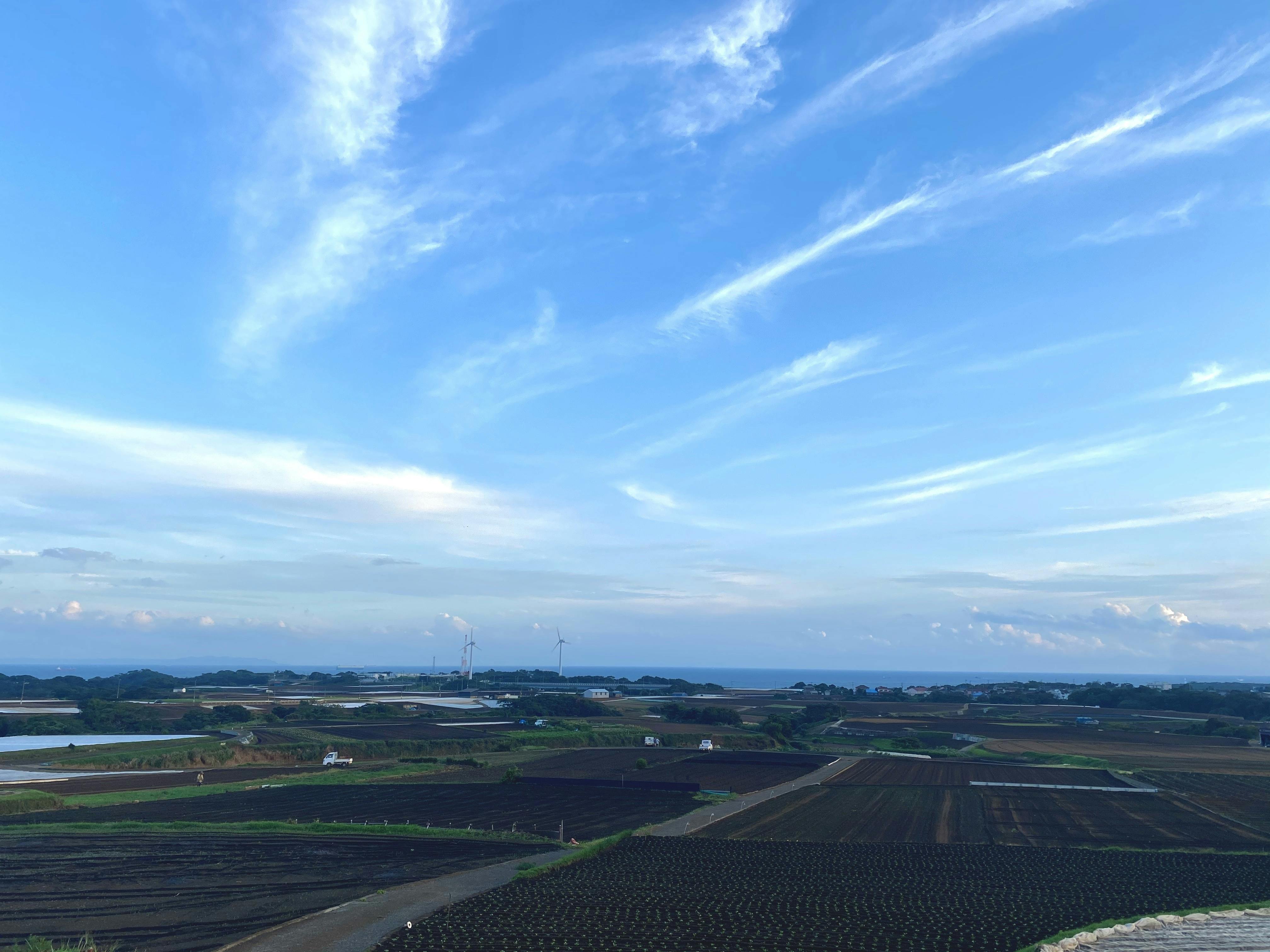 畑と風車と海
