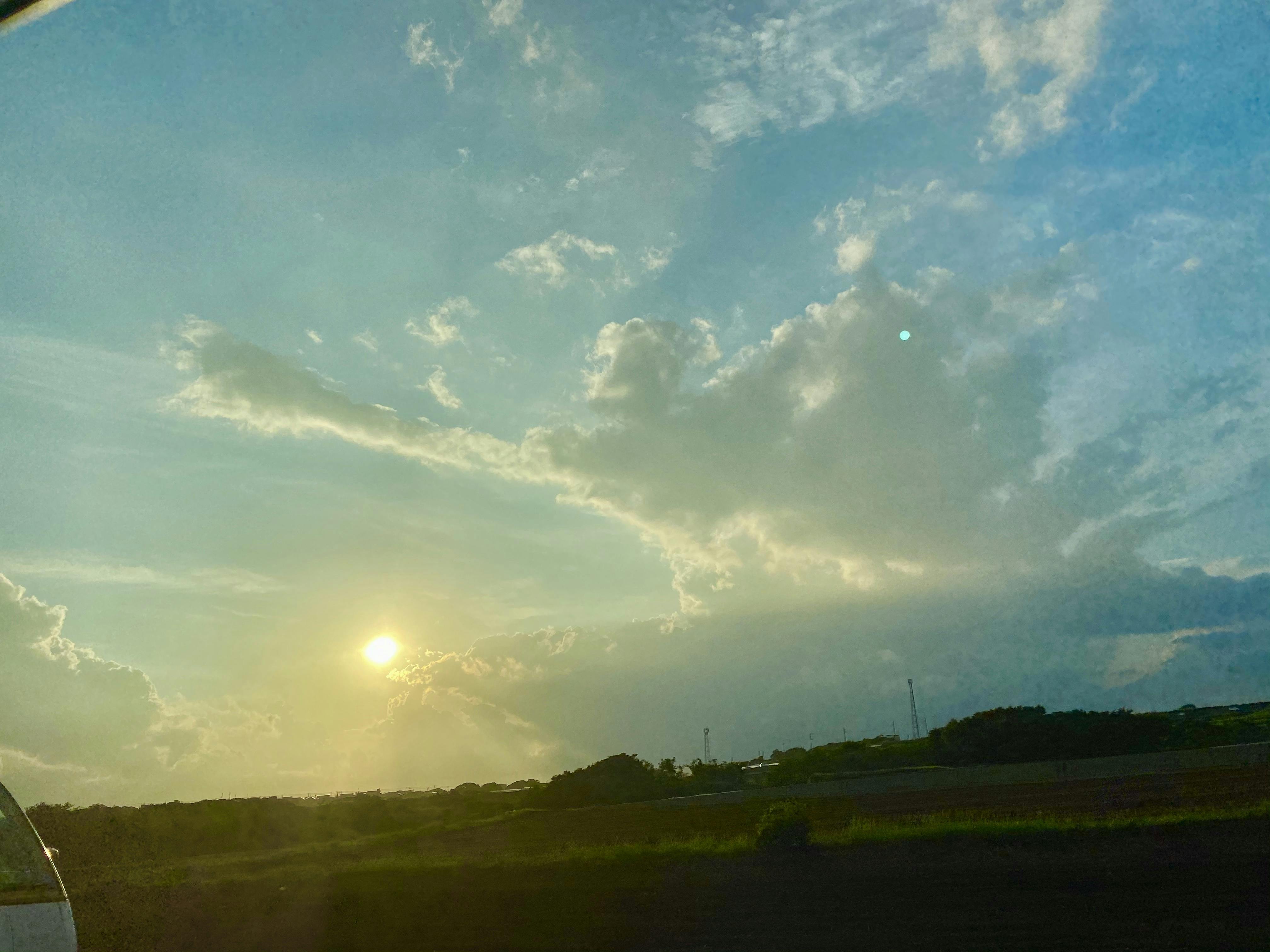 いつもは雲のところに富士山が!今回は夕日。